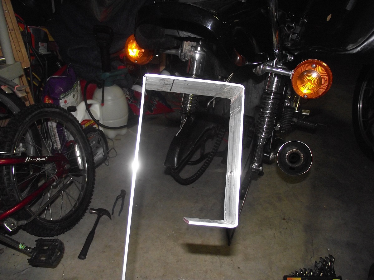 Back in the day in '82 I had made my own fender eliminator on my first Z. Just a simple 1/4" thick approx 4" wide piece of aluminum a shop gave me from their scrap bin. Guy even made the bends for me and all I had to do is drill the holes and cut the excess myself. Worked great. My rear fender is was not the nicest example. So I figured I'd give it a go. Here is what I came up with. I used the old rear fender which had a nasty repair weld and cut it back to size. Then I used a 1/8" thick 2" flat aluminum bar for the light. I'm using the original plate / light holder to hold the plate. I was lucky that it fits within the box bracket I made and will use the original bolts/holes of the light.