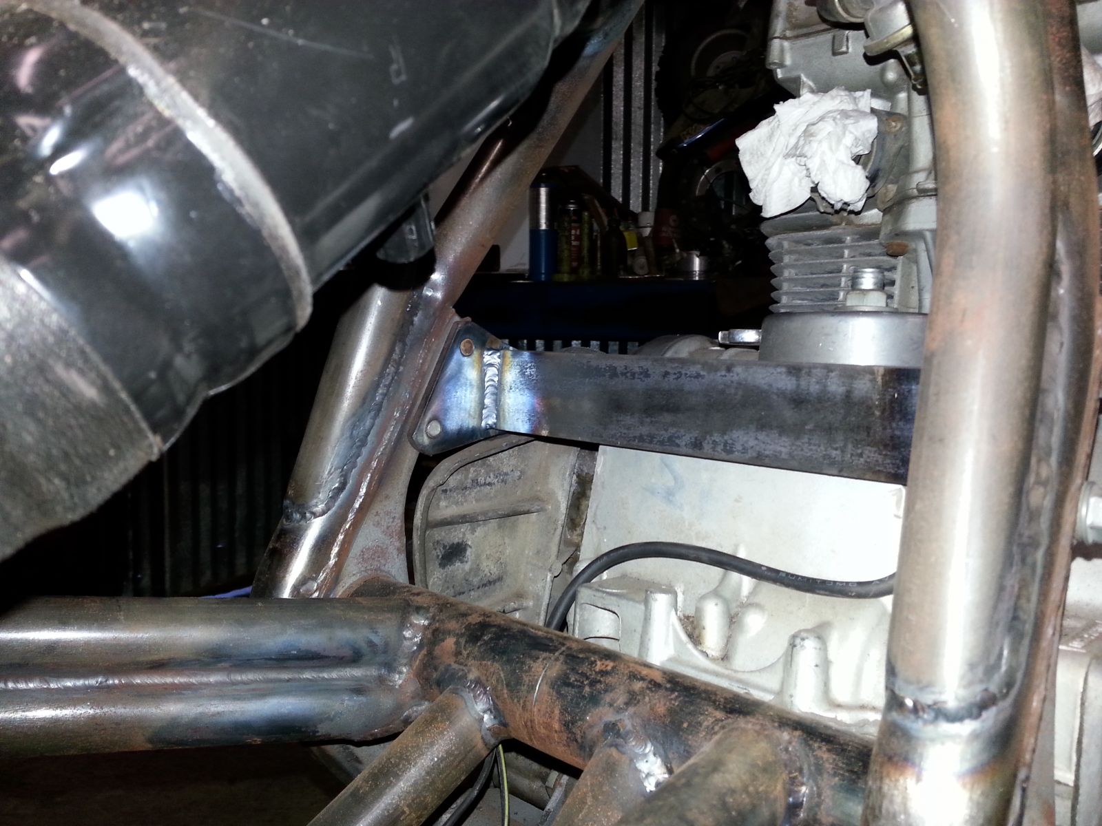 15 Apr 2015 17:09I have a 750 twin project i am going to be starting sometime, and i have been looking at ways to brace the frame. I wanted to put a brace over the swingarm pivot, but that would interfere with the air box which i would like to keep. i think this might be a good solution. What thickness did you use for the flat bar?