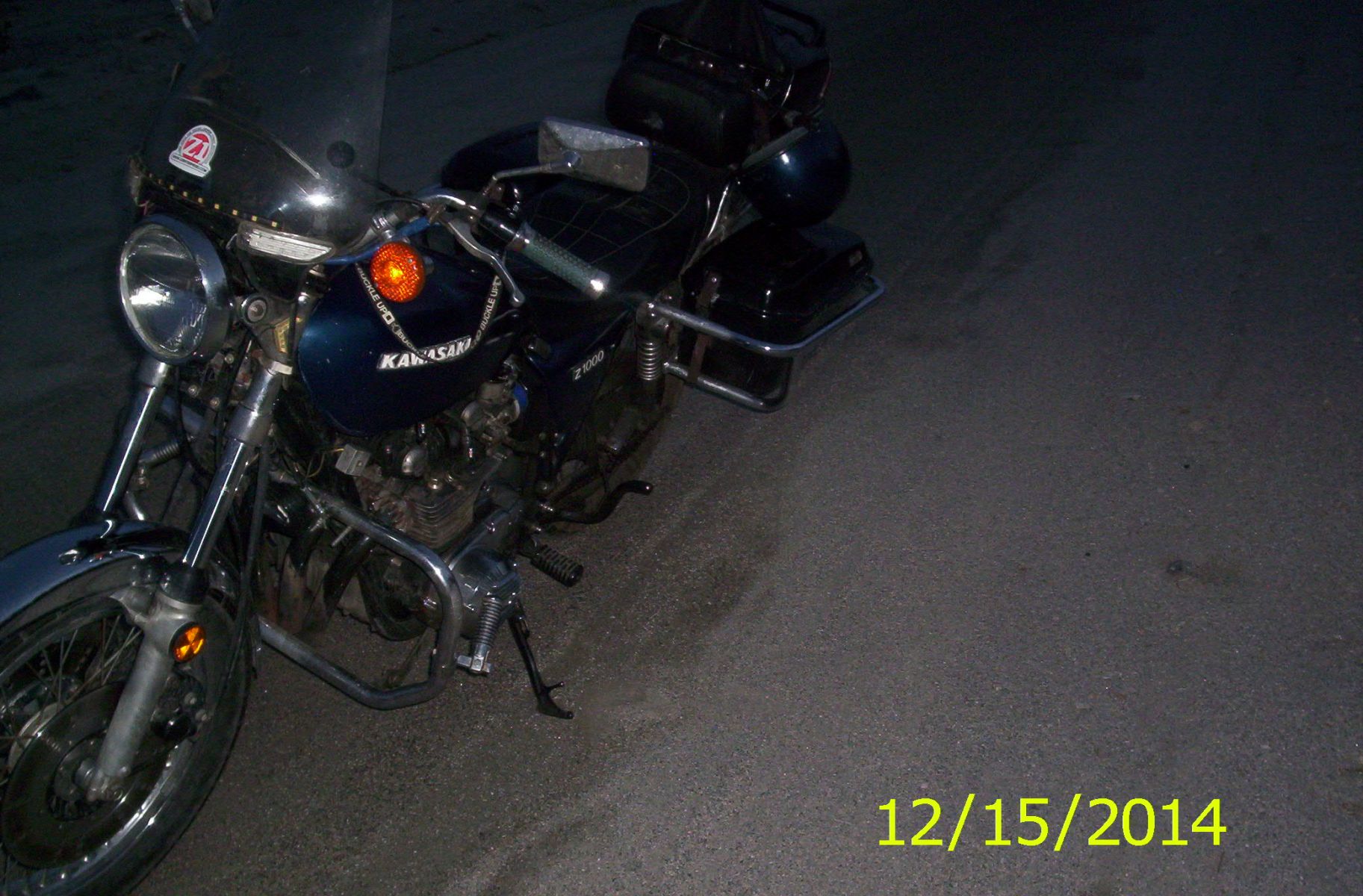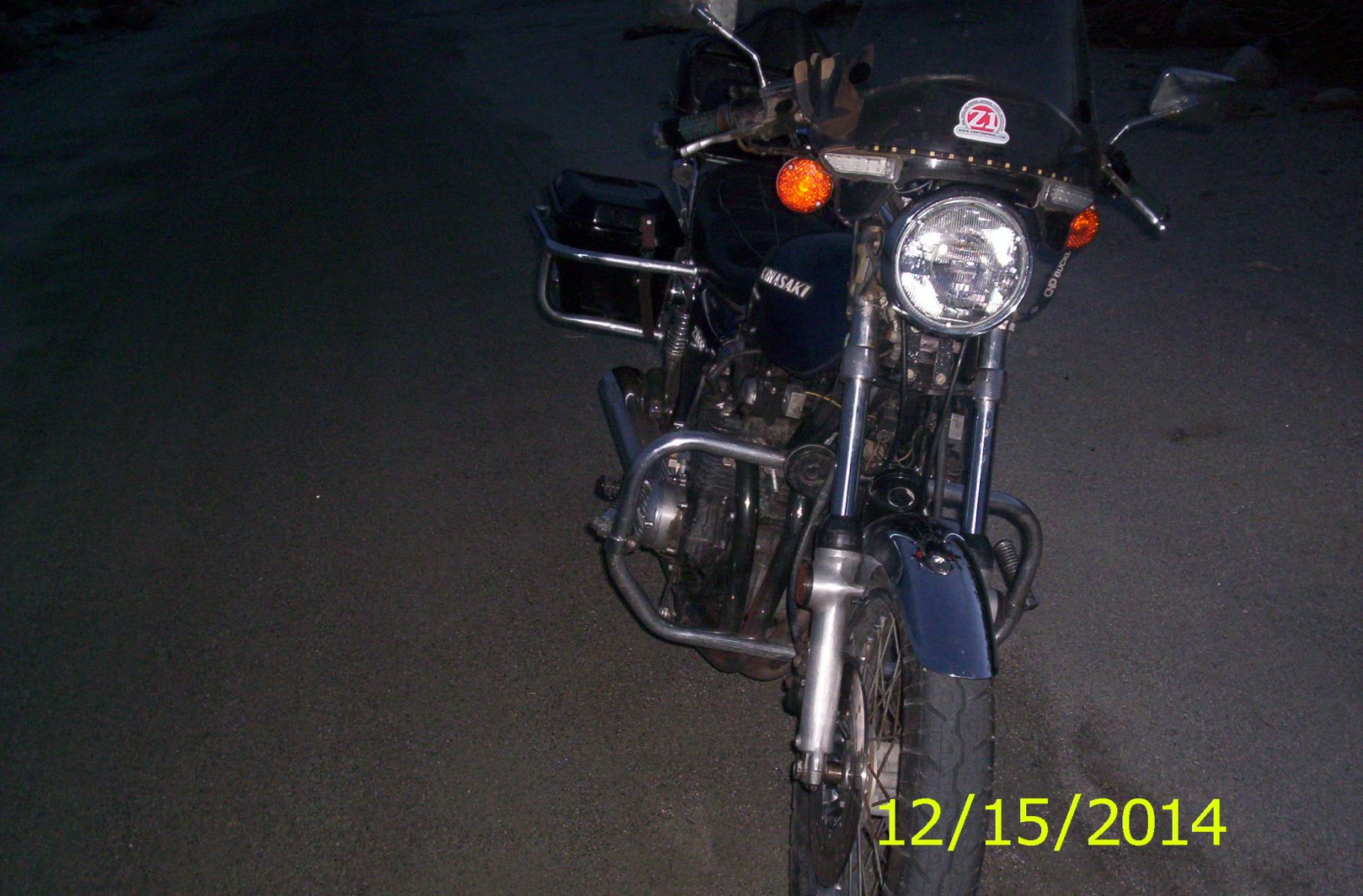 Thanks to Blake one of our members for the good deal on his KZP box guards. The police boxes are narrower than my 75 Amco aftermarket boxes. The mounting was lower as well. It took some doing and by using that ugly wrap around monstrosity that tied everything together, I cut, switched mounts and made spacers using what I had on hand. I'm not done yet but they work. I still need to make a bracket to go under the tail fin to connect the two boxes together. They're OK as they are but I want a little more rigidity. Shouldn't be able to see it if I do it right.