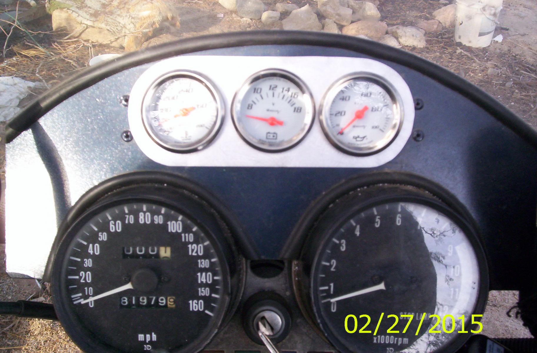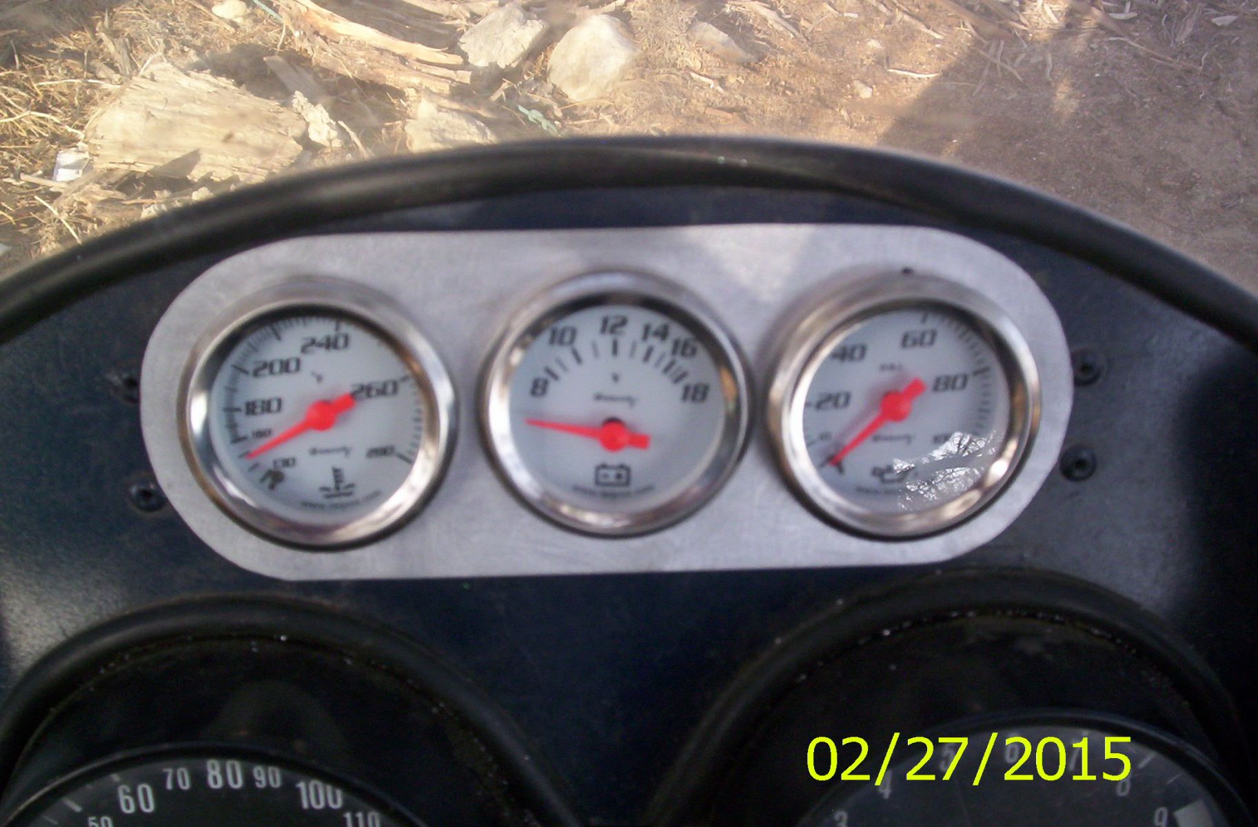 I just installed three gauges where the CB radio was. There are blue tooth combos available and I always wanted voltage, temprature and oil pressure right where I can see them. I wanted black ones but the hollow eyed guy at OR couldn't find the number for them so I got these at AZ. $35 plus tax. My question for you guys is, how would I embed the thermal couple under the cam block? I thought about a piece of fuel line but it might insulate it and give a false reading. Any ideas?