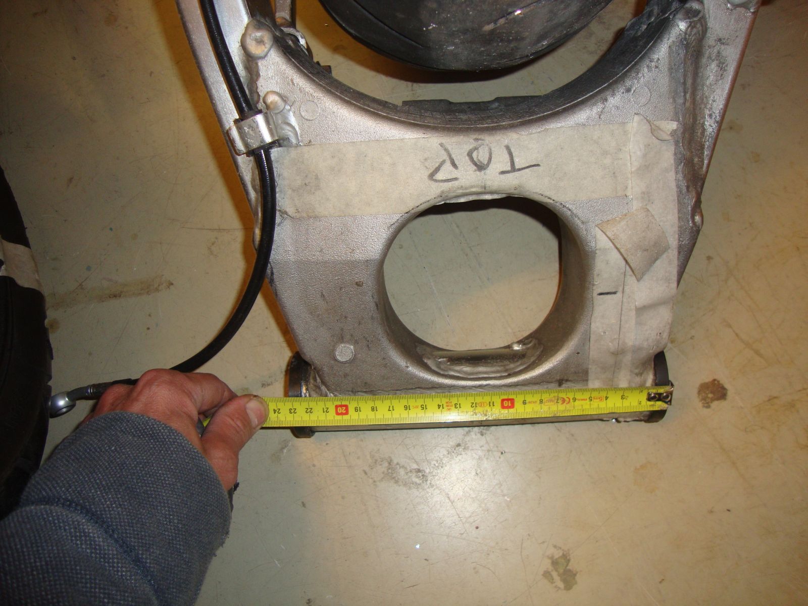 Hi, I'm considering the same swing arm for my gpz1100 B1 project, I'm using 18" gsxr wheels, and need to know the length from the inside back to see if the 18 wheel and tire would fit. Can you measure that please?