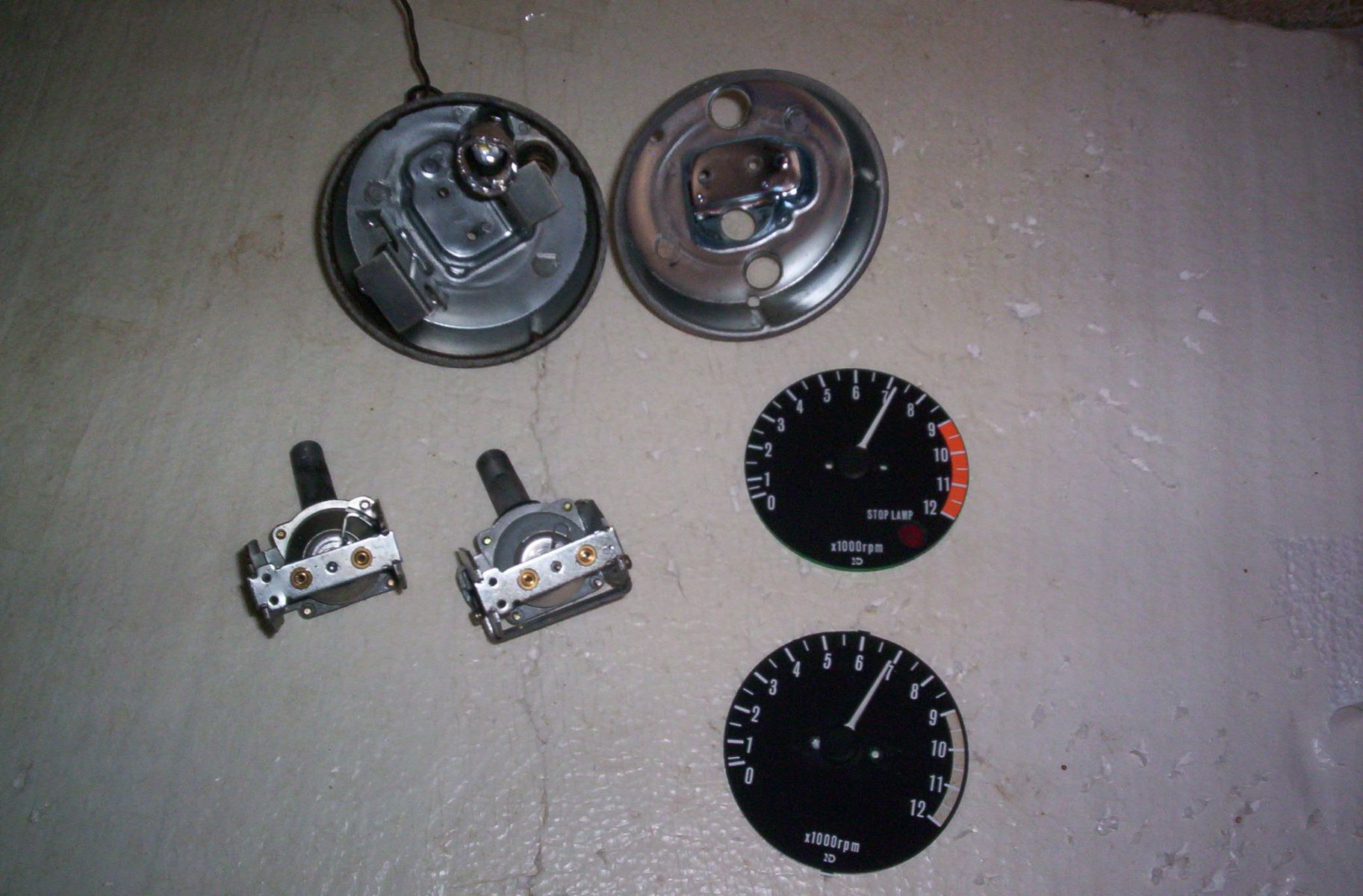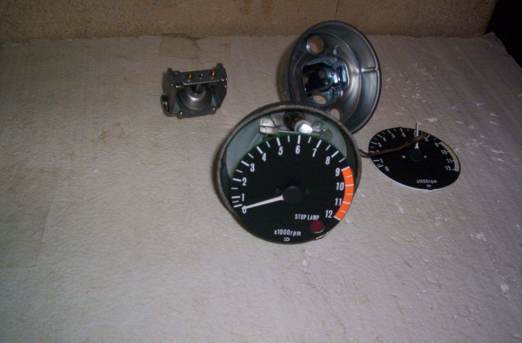 The idea is to turn a working KZ 1000 Tach into a Z1b by switching the internals while keeping the Z1 face plate and bottom.