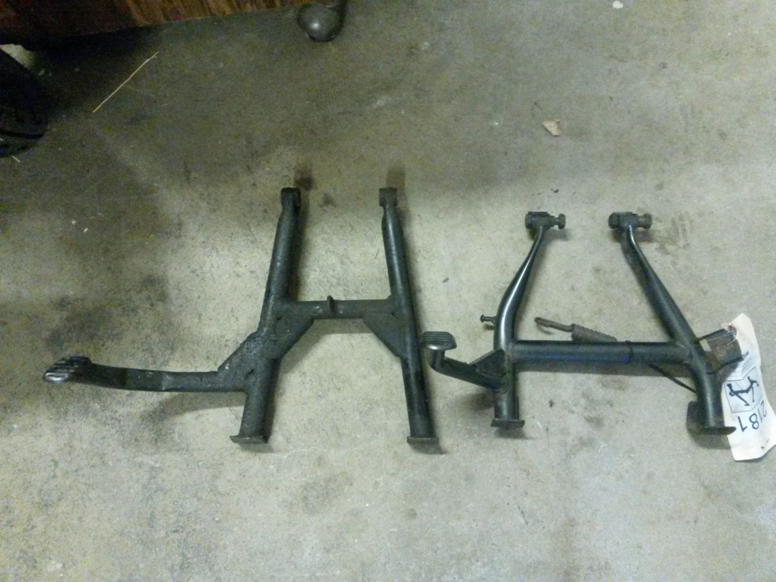 So I put a '02 ZR7 header on my '82 GPZ750. I had to remove the center stand because it interfered with the header. I'm really missing having it. Does anyone know if the center stand would mount up to my frame? I know I'd probably have to rig up a stop but i think I'm up to the task.