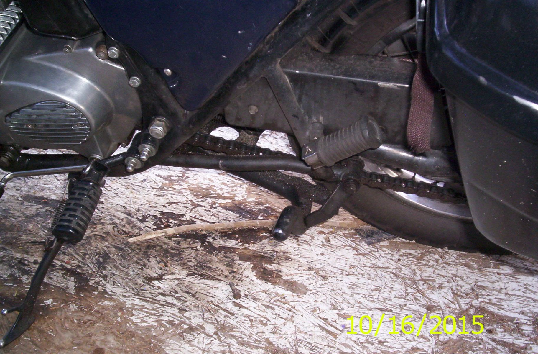 16 Oct 2015 14:11The B4 center stand is designed to have a rubber covered pin butt up against a flat spot on the stock exhaust pipes. Without the stock pipes the center stand does wobble around. I kluged up a way to lash down my center stand using a bungee cord and the two stock exhaust hangers.Stocky wrote: Nearing the end of a lengthy restoration Iim having some issues with the stands.