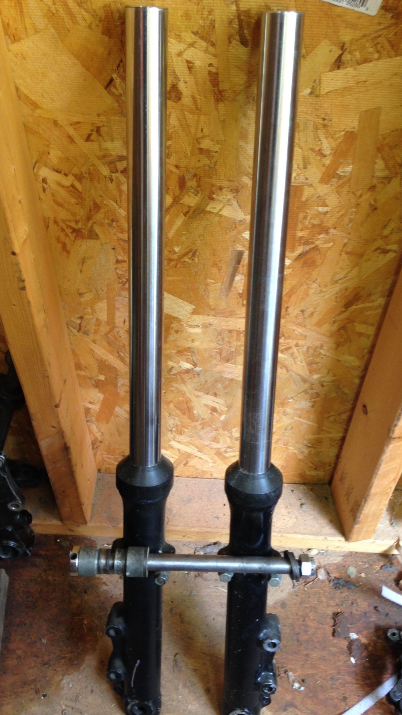 There might be an alternative to getting new tubes.I'm going to have the tubes from my 82 GPz750 done by the closest place that does hard chroming.If you think your 400 is hard to get tubes for imagine trying to find half decent one year only 82 GPz 750 tubes.It's not going to be cheap at $150 CAD a tube but I think it's better than trying to get some questionable legs off eBay.