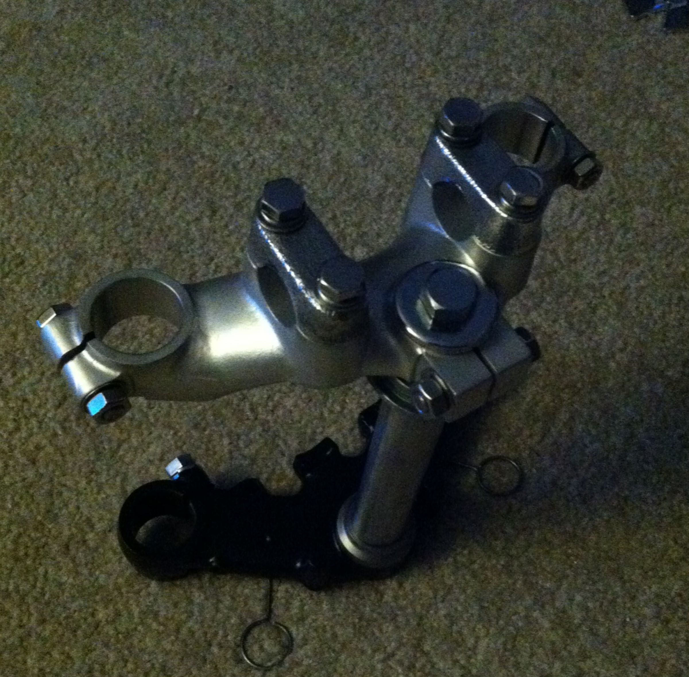 I don't like this idea Steve. Too much stress going into the soft aluminum handlebar clamps on the triple clamp. Better safe than sorry.
