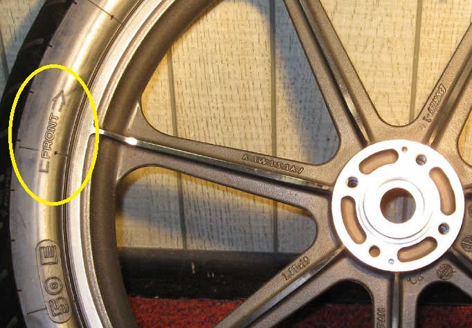 Look for an arrow that shows the tire rotation. Different makers use different arrows, but you should be able to find them. Here are a couple examples of what to look for. Ed