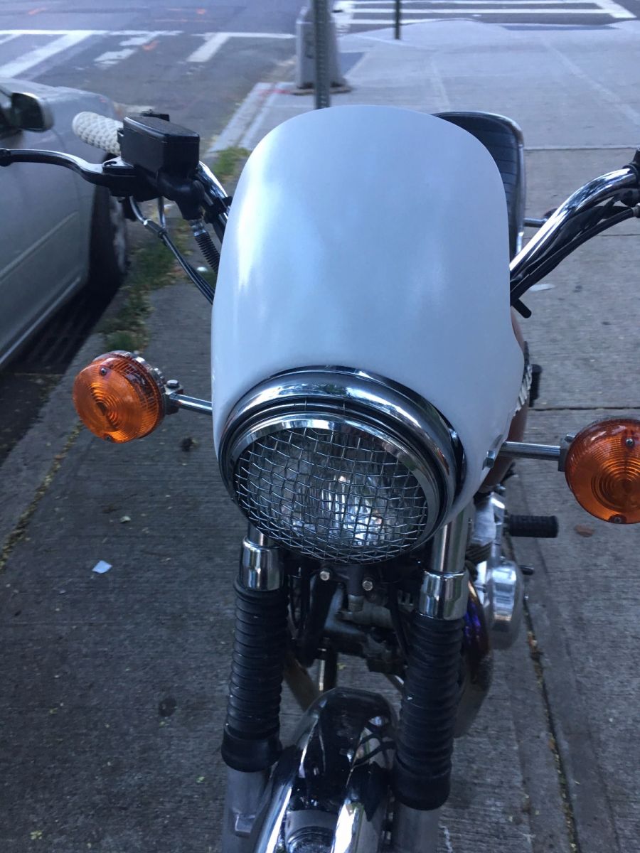So I made a choice on a fairing for my 77 KZ 750. Stripped it, primed it, and after MUCH struggling, managed to get it on my bike. There are a few pics of it below.