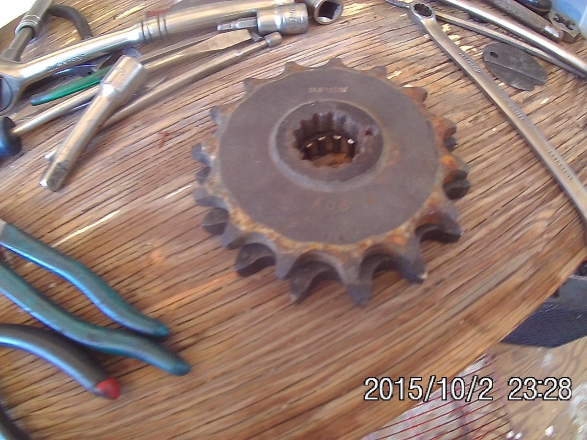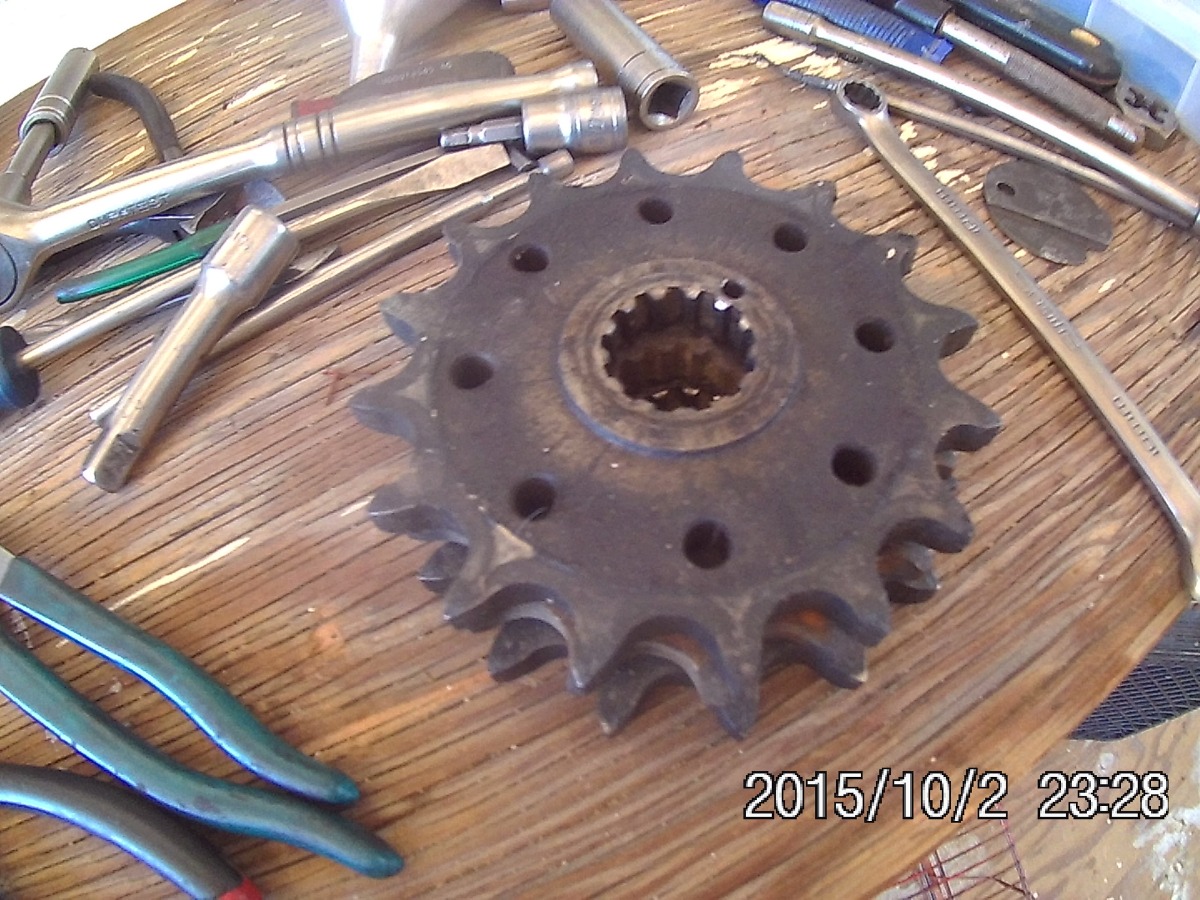 At least 10.000 miles on this one. First a NOS O ring chain, when it developed tight spots a new Gold high performance O ring chain (made in china) then a standard 630 chain until I could afford a whole new setup. See any misalignment marks or undue wear?