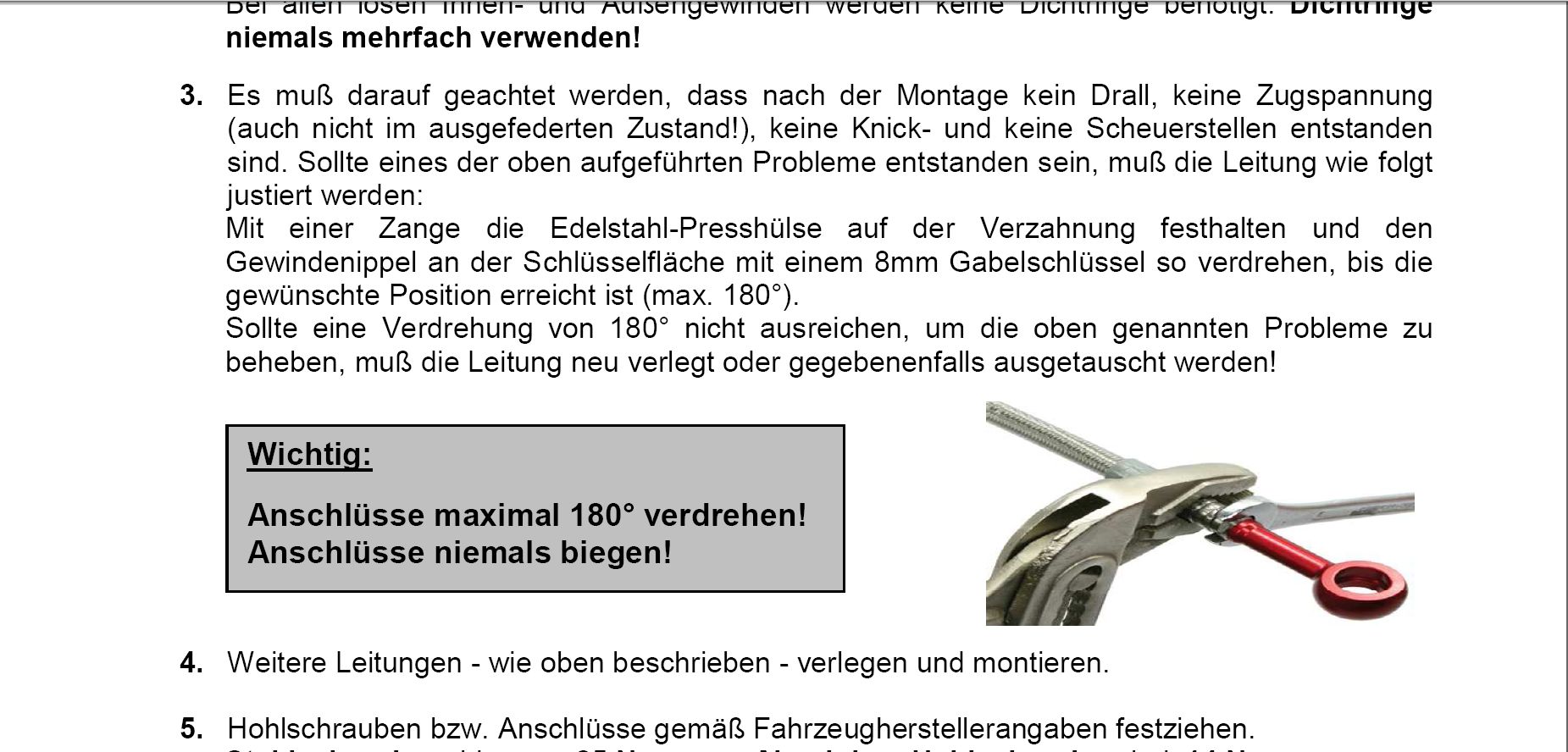 Some brake lines can be turn around max. 180 degrees at the Banjo fittings to twist it away from scratching on other bike parts with a vise grip carfully.
