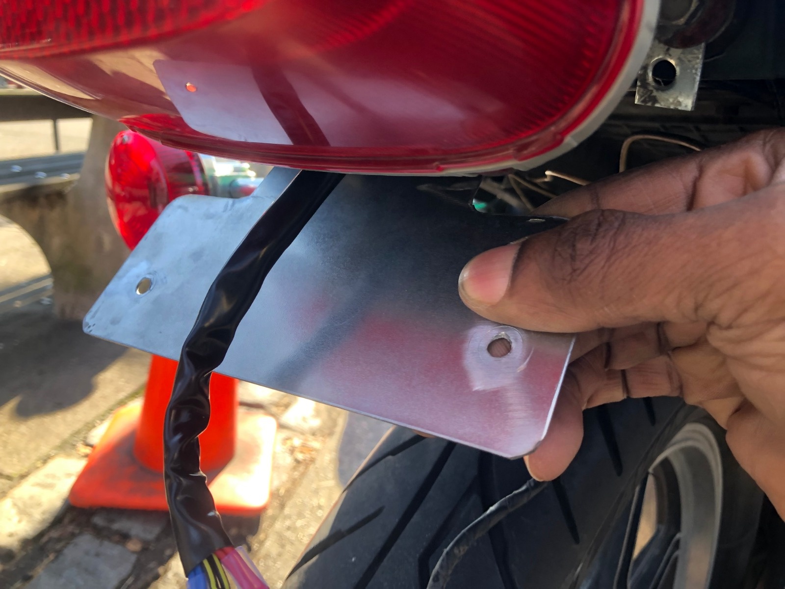 I did it. Almost done with the whole project. It was a lot easier than I expected. Got steel sheet from Home Depot. 16 gauge. Roughly cut that and made a license plate bracket.