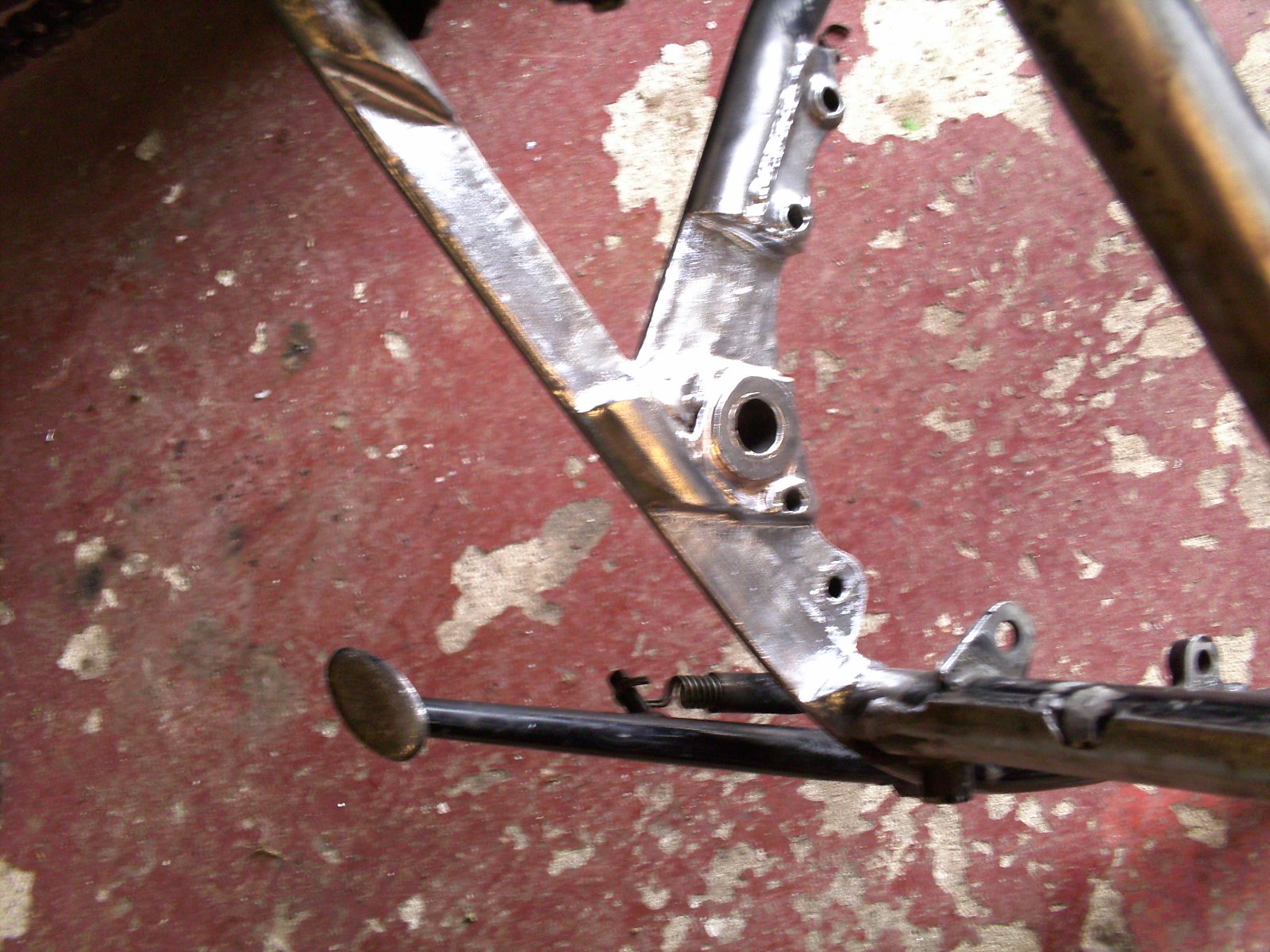 Then I countersunk the aluminum rear, used 45 degree flat head machine screws. This took away the stud and bolt sticking out. This gave me clearance at the swingarm, so I did not have to modify the the rear very much. Downside is an aluminum sprocket. But this bike is not a road bike.