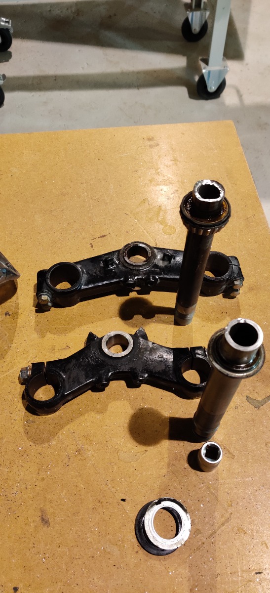First I milled off the welds on both steering stems.