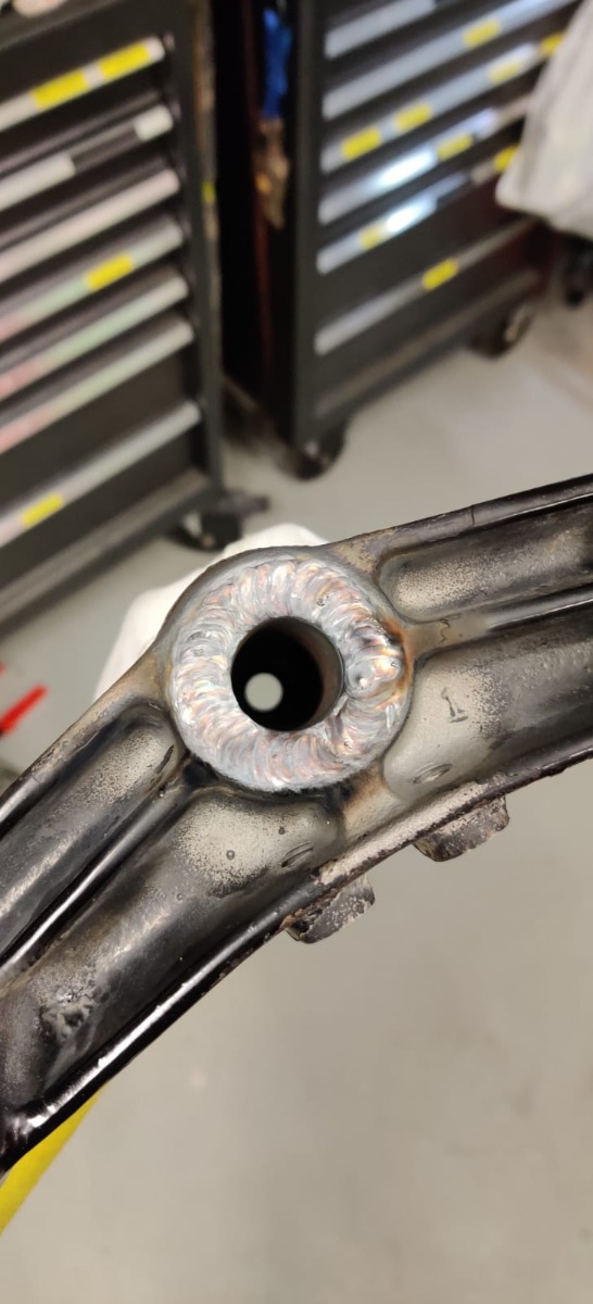 The 650 stem was smaller then the KZ1300 so I made a bushing to get a snug fit and then welded in the stem.