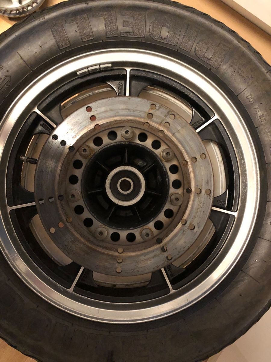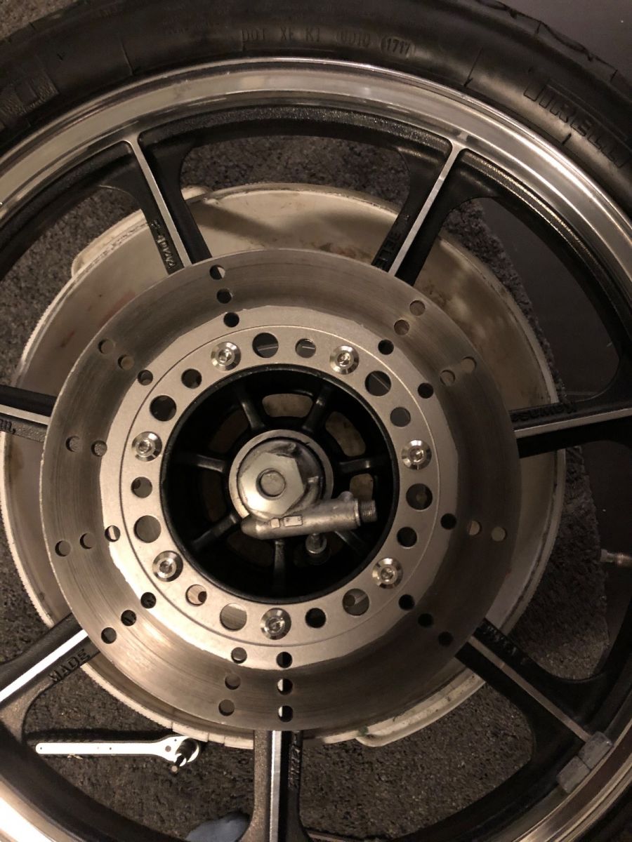 Rear wheel ready to be reinstalled.