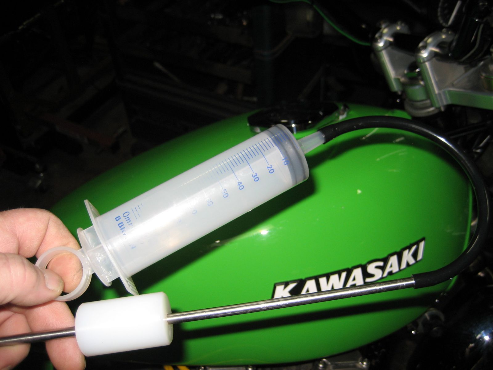 Kawasaki mechanics didn't bother doing the measurement after adding the oil. I checked the manual and the 81 & 82 1000-CSR