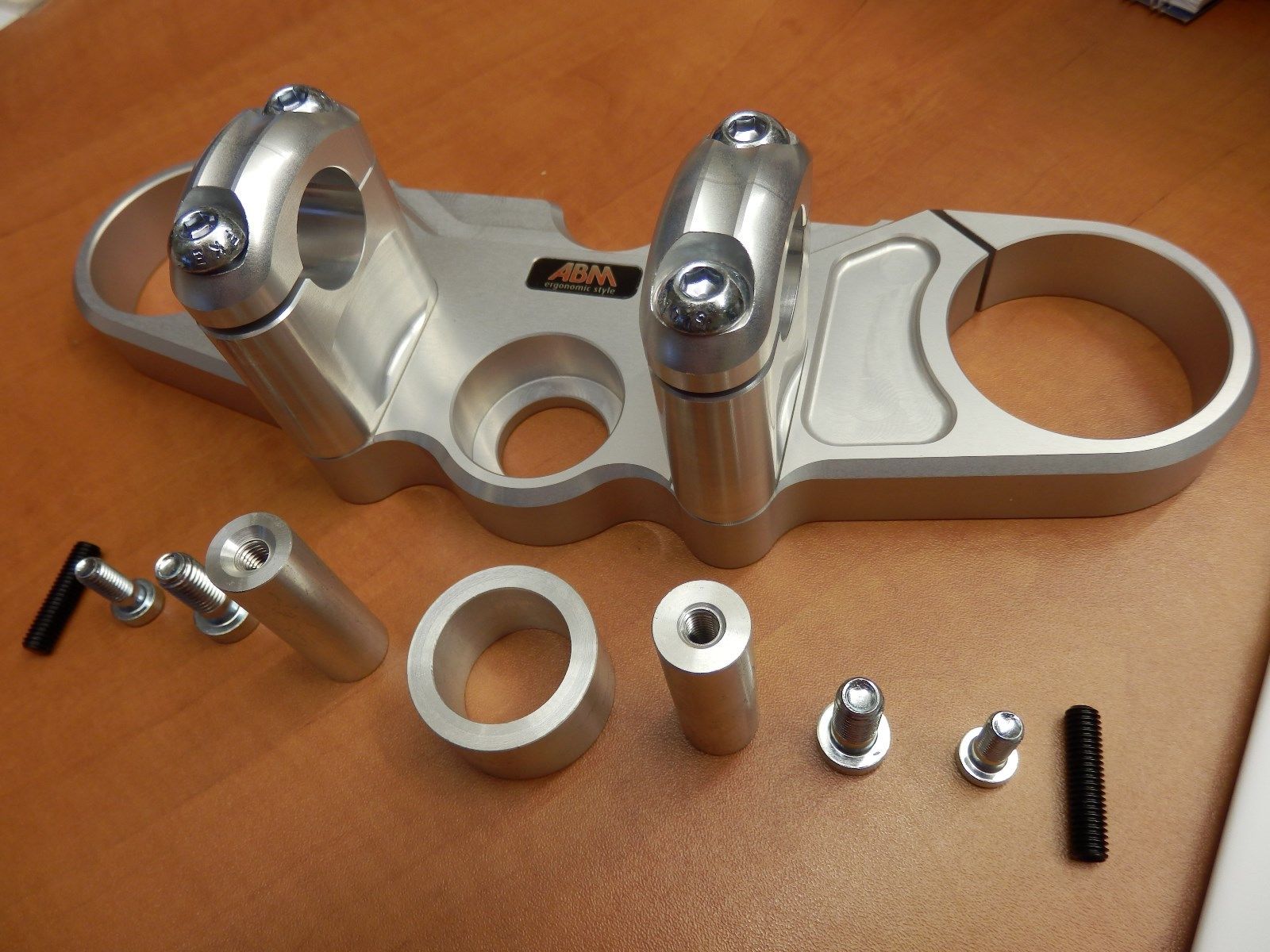 I am using a Spiegler (aka ABM or LSL) Superbike steering bar top yoke. Never had any ground clearance issues with my fork legs lowered by an Inch.