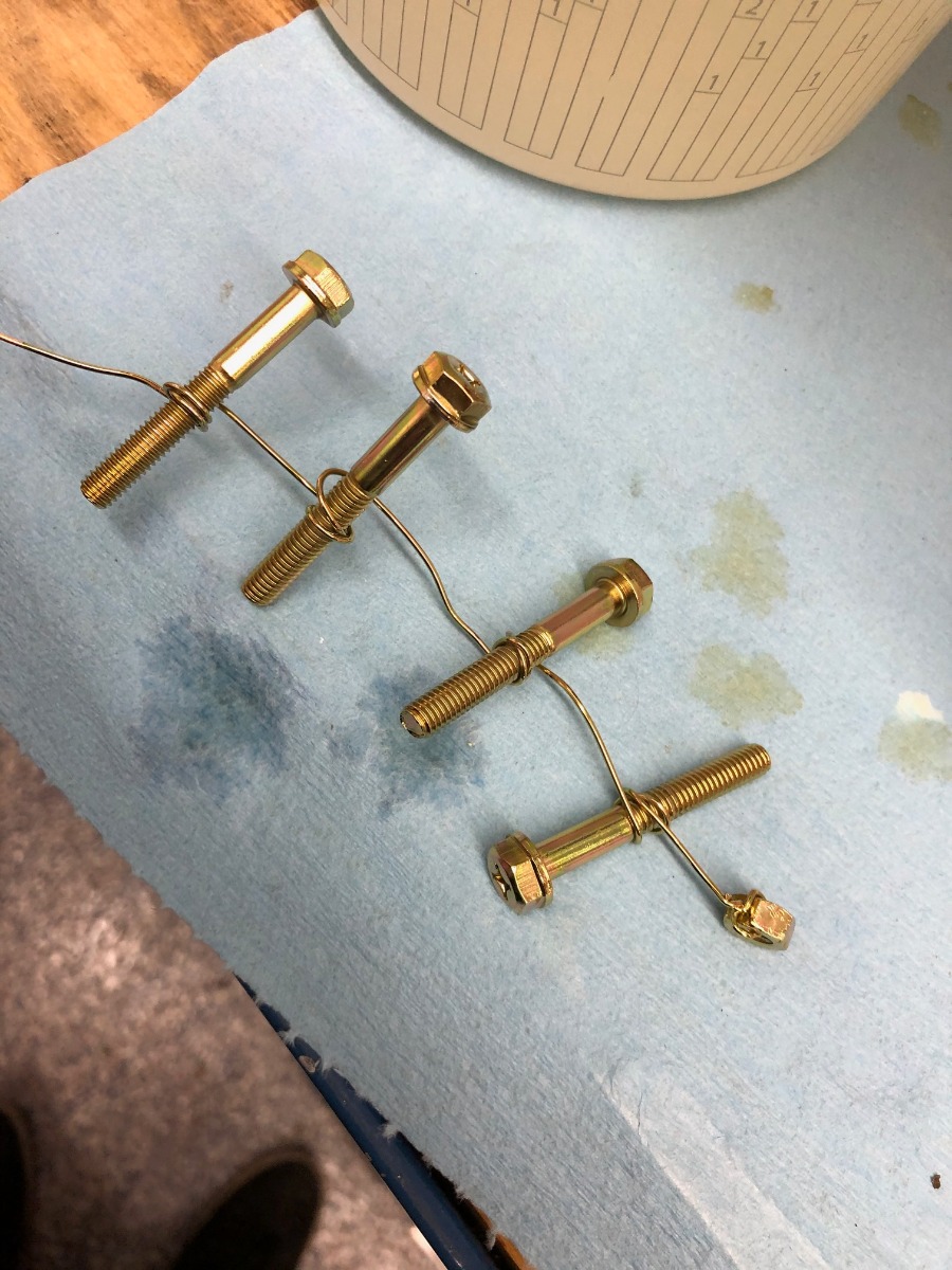 2. Per Nessism info - I dip in acid (mixed muriatic acid from HD 50/50 with distilled water) until bubbling stops. Probably 10-15 seconds, maybe more for some certain bolts.