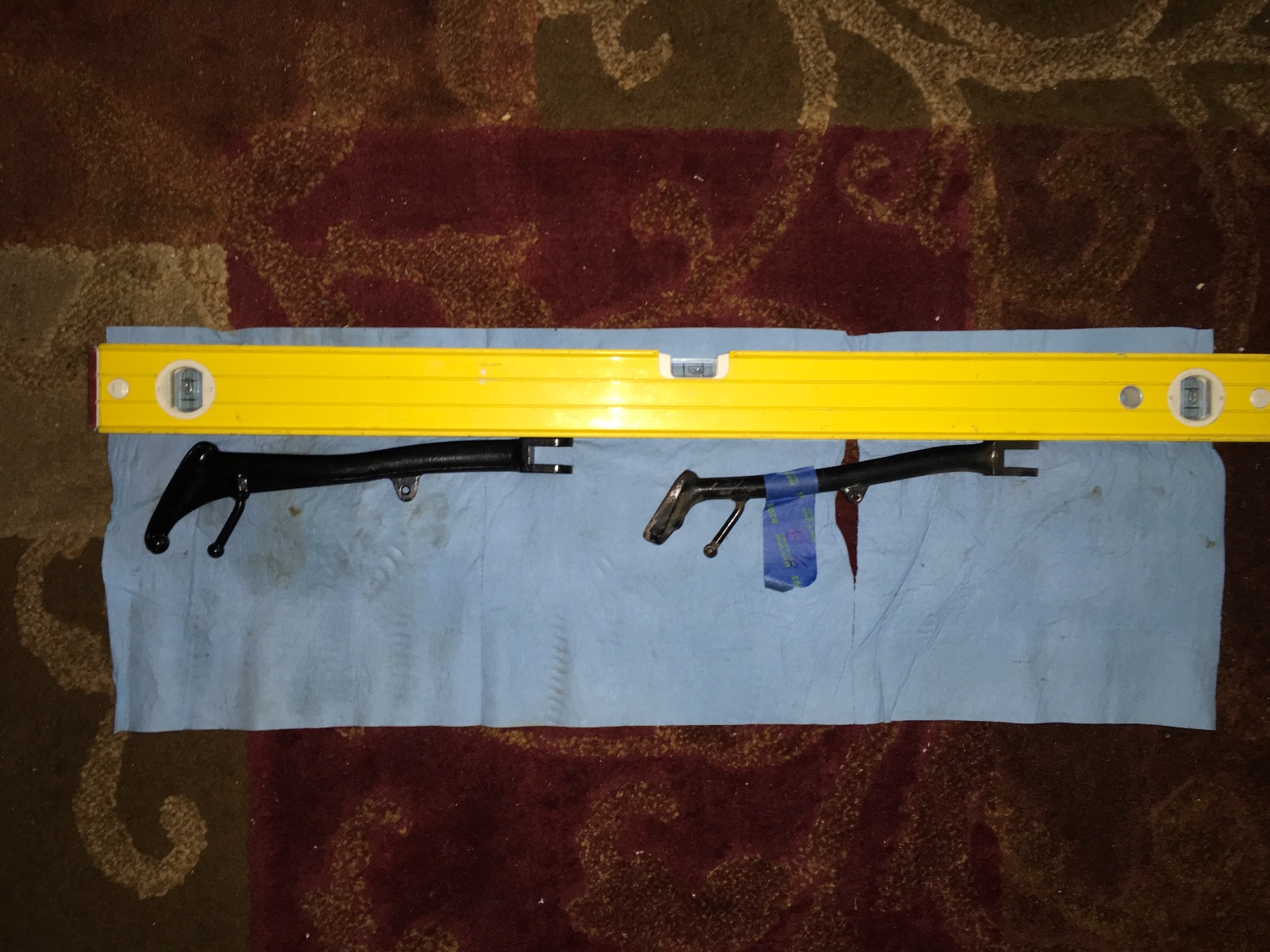 I made sure the level and the yard stick were parallel and the top of the stand was sitting against the level square. The Kz900 measured 11-5/16” and the Ltd was about 3/4” less at 10-9/16”