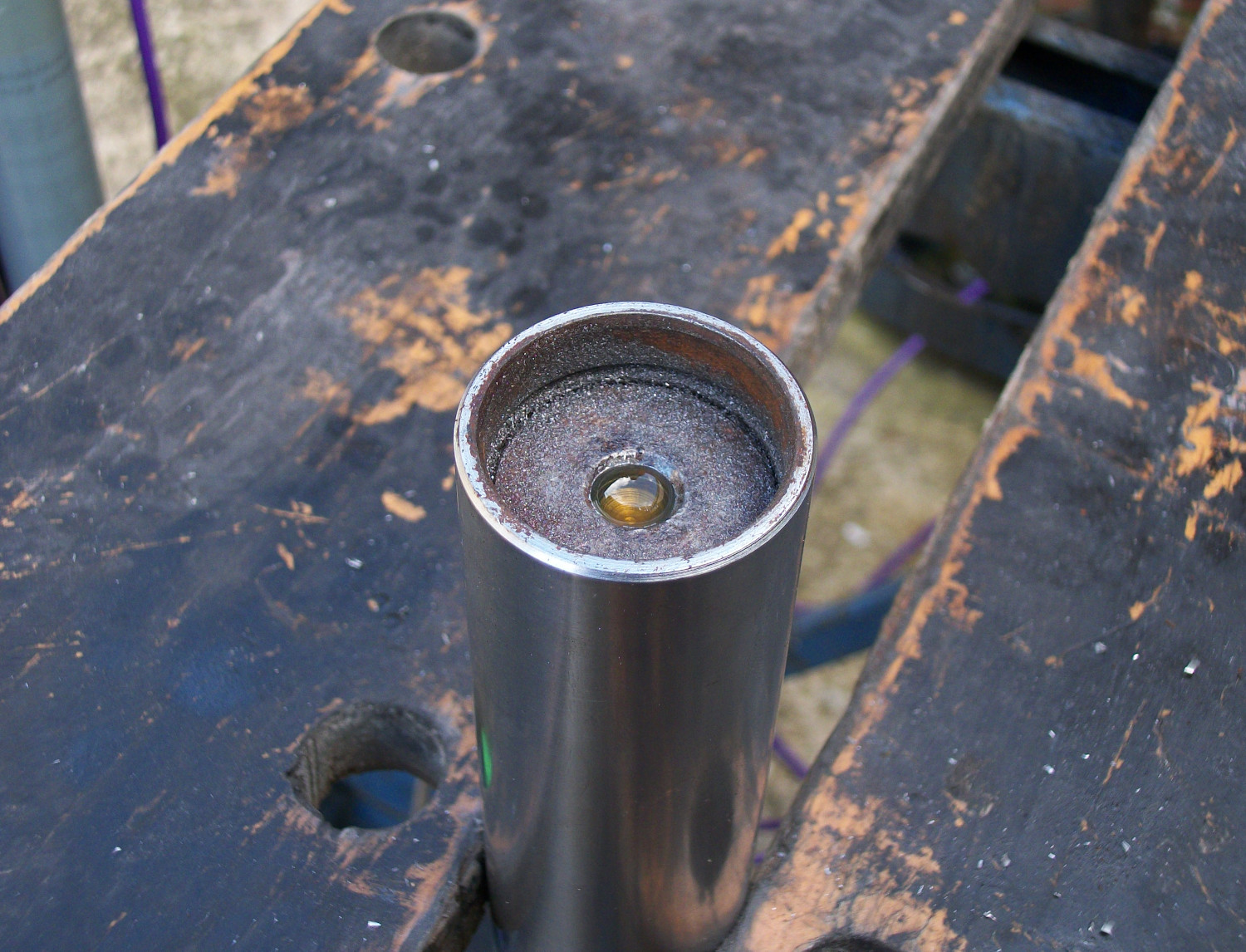 Just started on the "spare" Z500's forks that I have had for 38 years in the back of the shed with the rest of the bike and found on fork must have had water stood in it and rusted up.