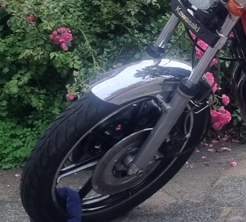 1978 KZ650 C2, 130K kms, Delkevic ex, EI, CVK32, PMC easy clutch, ATK fork brace, steering damper, braced swingarm, ZRX shocks, 18" Z1R front wheel.