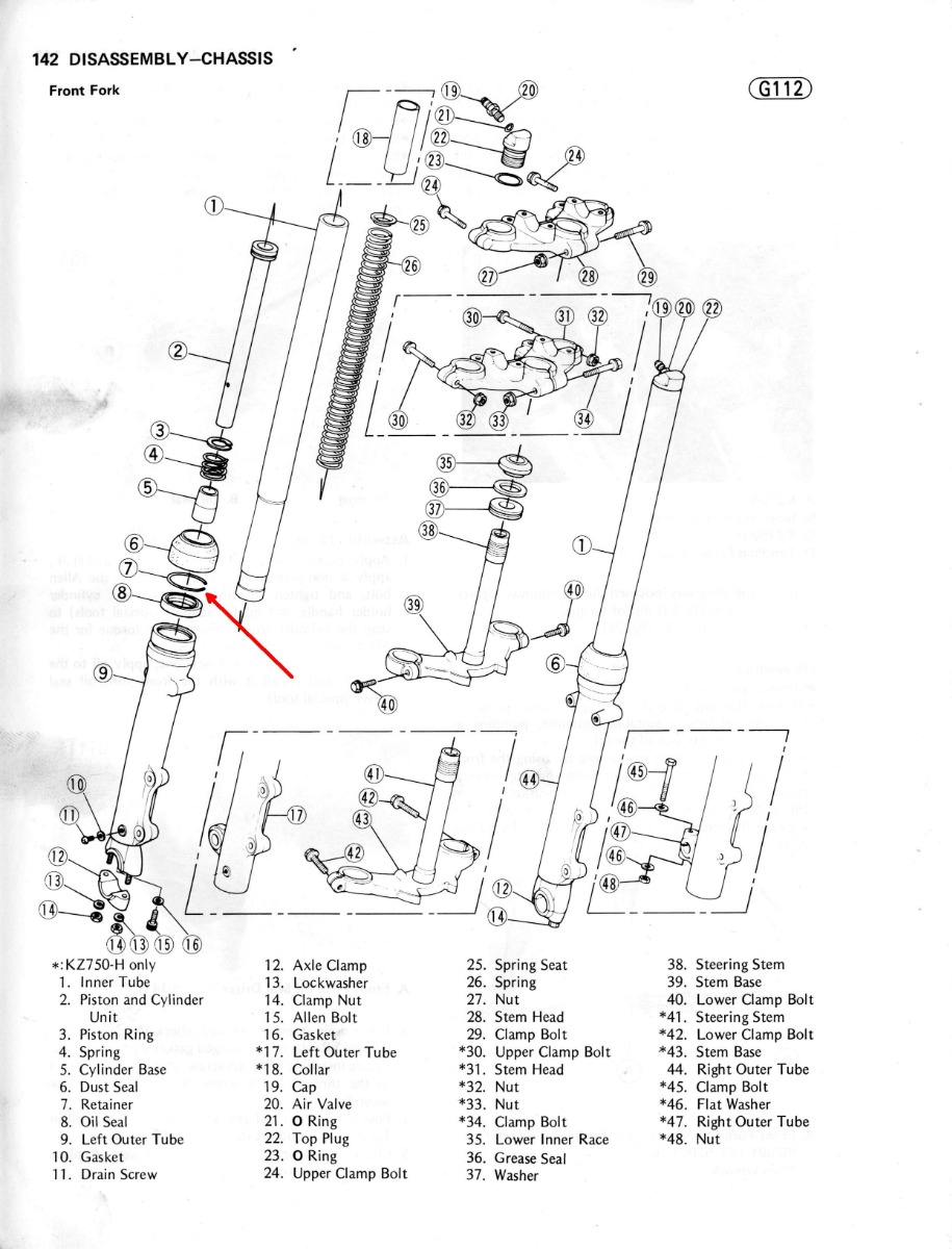 KZ750N1 front fork dissembly