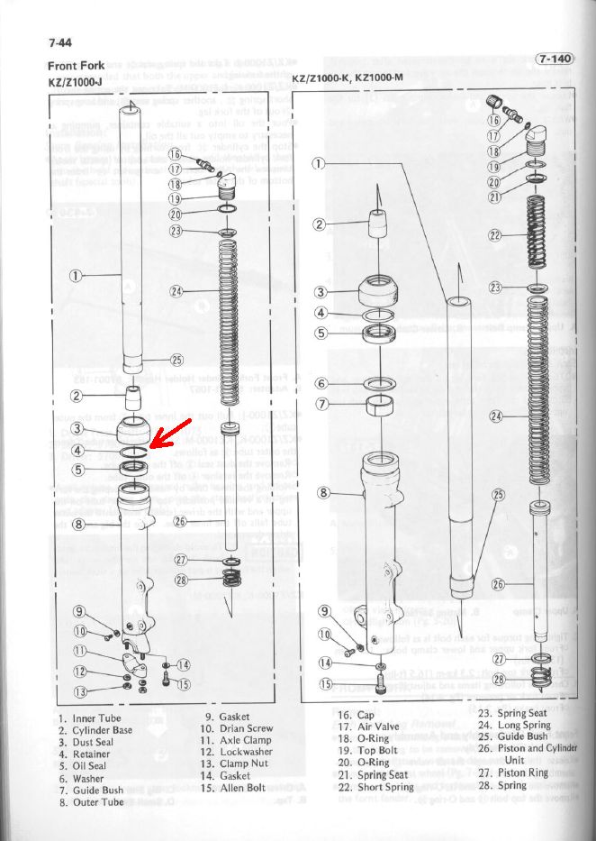 20 Jul 2022 13:08Thanks for the help everyone! I completely forgot to take the Allen bolt (duh!). Along with a little persuasion from a blowtorch I was able to complete it! I appreciate everyone helping me out I feel like a monkey with a hammer whenever I work on my bike hahaLook at the breakdown Scirocco posted. Did you remove the Allen cap bolt #15 out of the bottom of the lower. It holds the damper rod in which is keeping the upper stantion in the lower. Once you get that #15 bolt out the fork upper and lower will separate. This will allow you to properly remove the seal, clean and rebuild the forks. Remember to also remove the snap ring #4 to get the seal out.