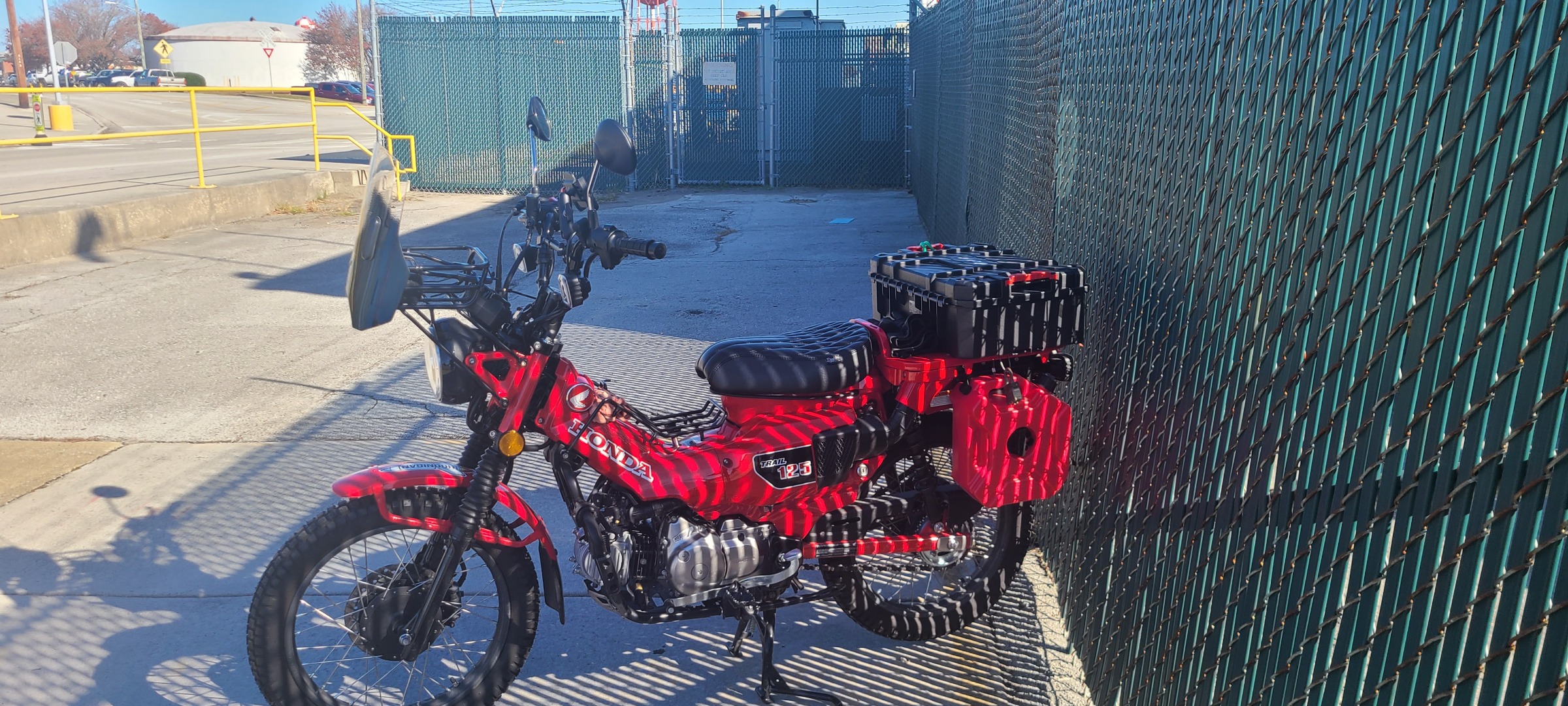 Well my little Honda trail has a small Jerry can that I've actually used more for other cars than I have for the bike. I have my tool kit on board and can pretty much rebuild that engine on the side of the road if I had to. I also have 2 extra tubes and patch kits for the tires. I'm one of those weirdos that doesn't like to be broke down at all I tend to be overly prepared. It's very much my military nature. As far as my 750 goes I am thinking something along the lines of a scrambler type of set up but I want to run a set of soft bags and I would like the cargo rack on the back because if nothing else I plan to ride this to work and I want somewhere to strap my lunch Box.