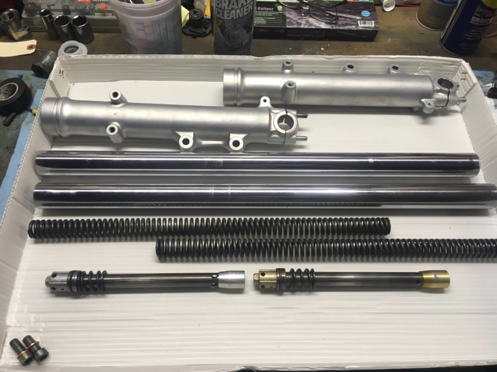 05 Sep 2023 14:56 - 05 Sep 2023 14:59Fork lowers were vapor honed (blasted). Recently rebuild two set of Z1 forks for Wheelhop at our Zukey Lake get together. Same guy did/does my blasting.Those look real nice!!m
