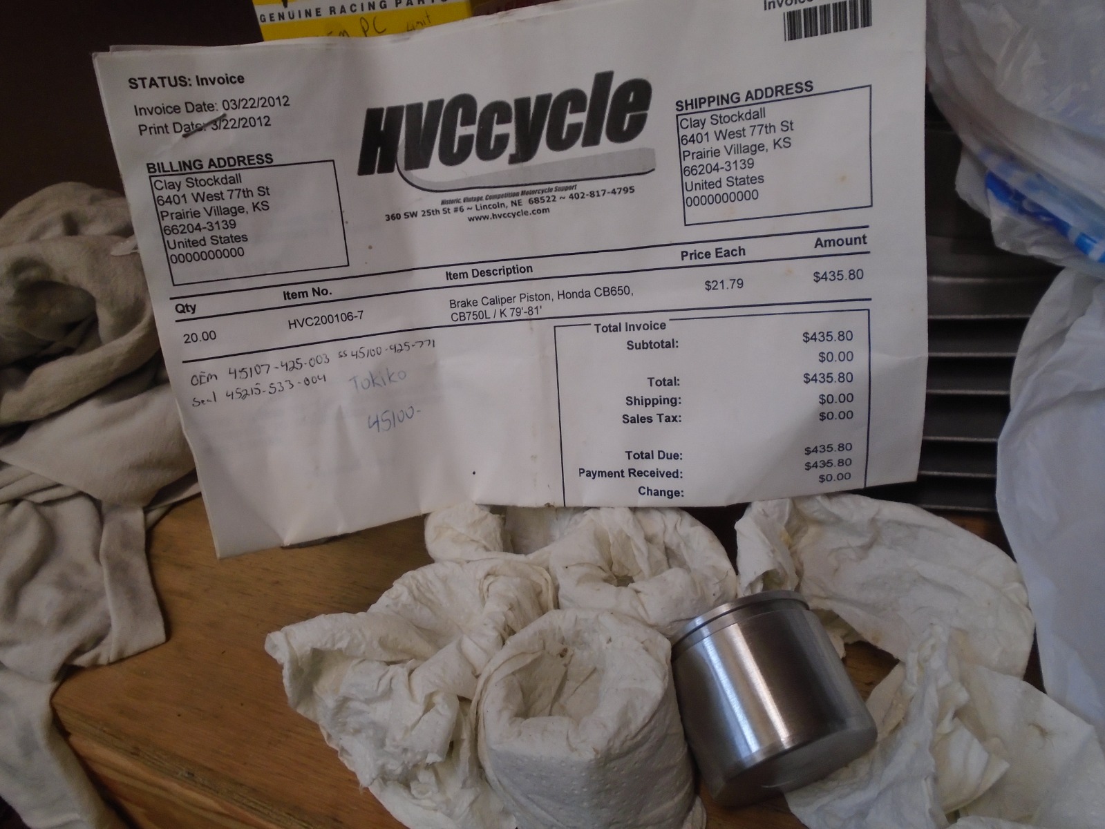 Thank-You!! On a side note i had a gaggle of those 79-up CB750K, rare at the time, pistons custom cut from SS blanks. They only had one front caliper so i know the cost involved. Think that was from HVC cycles about 10-12 yrs ago. Bought/had made 20ish still have 5 or so left but sold like hotcakes. I'll be in touch with that gent for sure! Thanks a Bunch!!