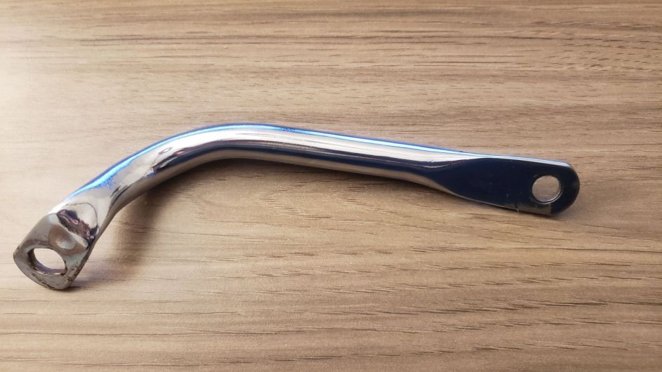 I seem to vaguely remember that it was used to assist in getting the bike up on it's center stand. I can't for the life of me figure out how it was mounted. I almost fits between the rear upper shock mount and the rear turn signal, but the length from hole to hole is a bit off and it would interfere slightly with the ducktail. I think it would also interfere with the grab rail that goes around the back of the seat. I haven't been able to find it listed in any of the parts books or online parts drawings. I also haven't seen any pictures of Z1s online showing this piece.
