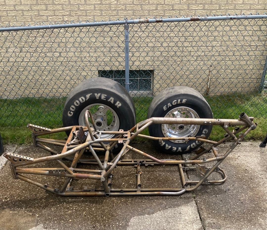 This was an old "Puppet" chassis, Kory Hogan went 250 mph on. crashed it.I had knew were it was. I purchased it after a business closed. Returned it to the original team owner.Took it to Harley Nitro drags in Norwalk, OH. last week endPuppet built it in 2003. $15,000All this chromoly tubing weighed about 65 pounds!