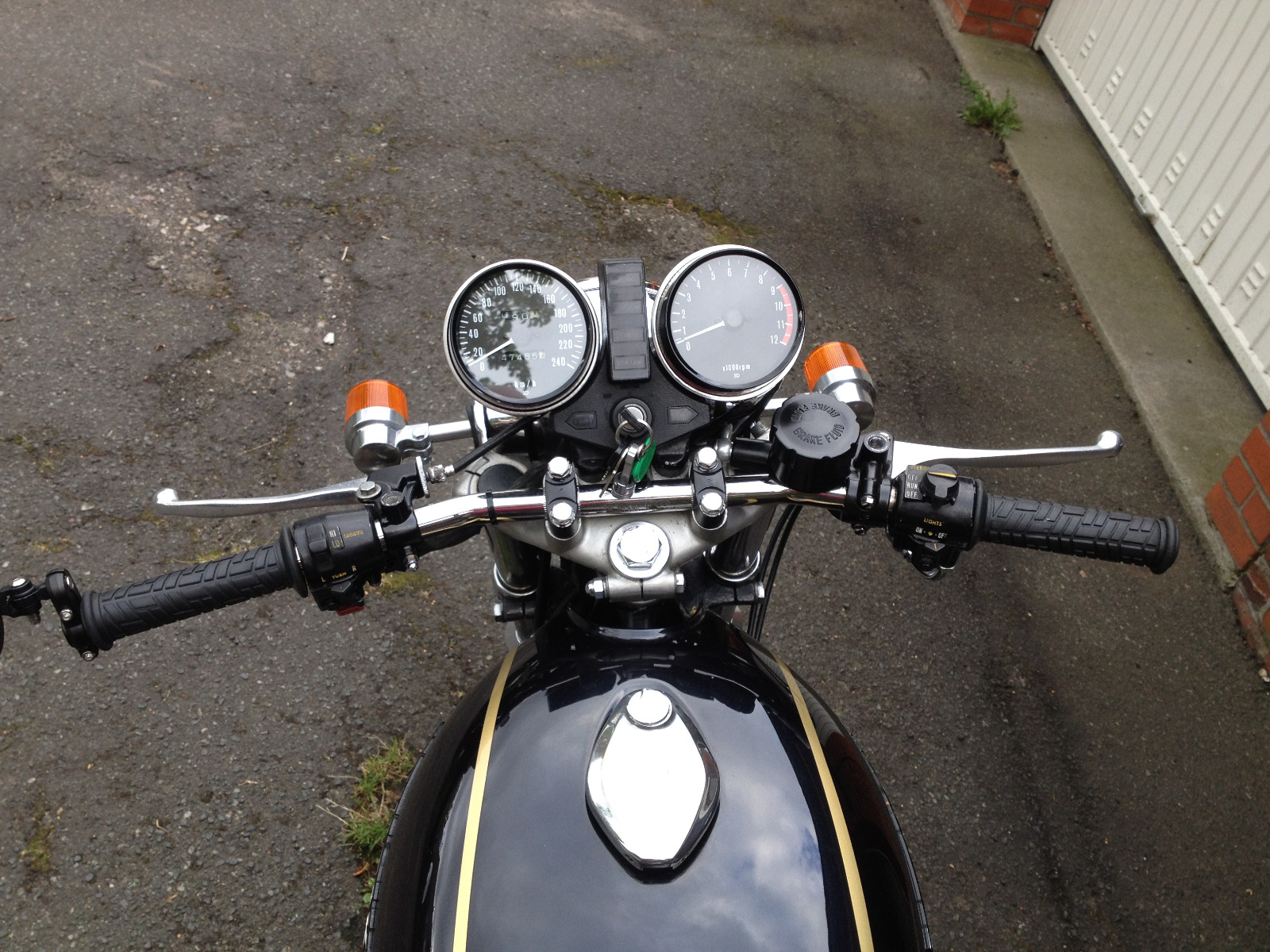 Hey, I'm kind of dumb and didn't plan very far ahead when I started switching the handlebars on my 1978 KZ1000 LTD. I'm in the process of replacing the stock cruiser-style bars with the "