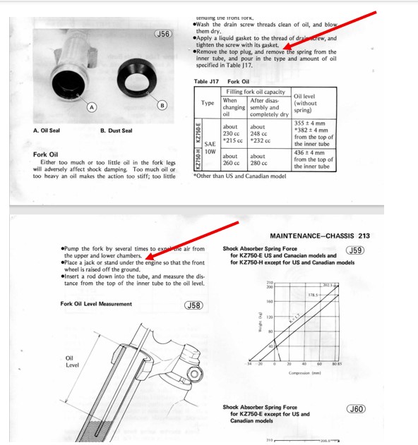 06 Jun 2025 02:09The extract I posted is from the Kawasaki factory manual in the file base. It states spring removed and forks fully extended (also in the filling capacity chart it states "oil level without spring")HI Wookie , I might be just thick here, it does state fully compressed in the Haynes manual, cannot see anything in Kawasaki manual, nor can I find anything specific elsewhere, only a post re Z 750 twin.