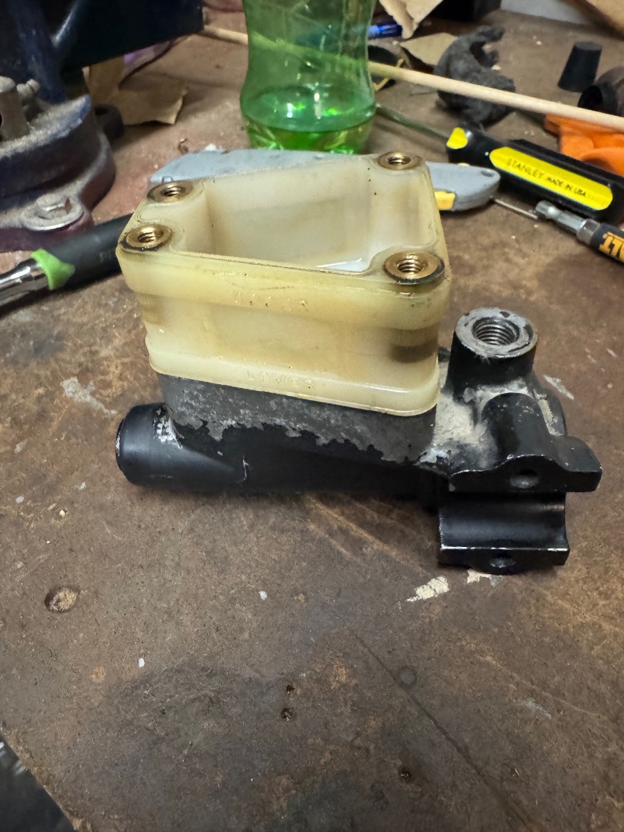 Today 06:37If only people would change their brake fluid and the correct intervals they would not have these challenges with internal corrosion !!Yes, it's removable. Have handy a nice #2 JIS phillips bit or screwdriver for removing the two screws at the bottom of reservoir. You want to properly remove them!! They are a bear to remove if you bugger-up the threads. What appears as a trapezoidal plastic bit visually it's actually round underneath and uses an o-ring for sealing. Might want to solid mount the master to something and use an impact driver to remove those 2 screws. Square and sharply without letting the #2 bit wander. They can be a bear to remove, just saying..
