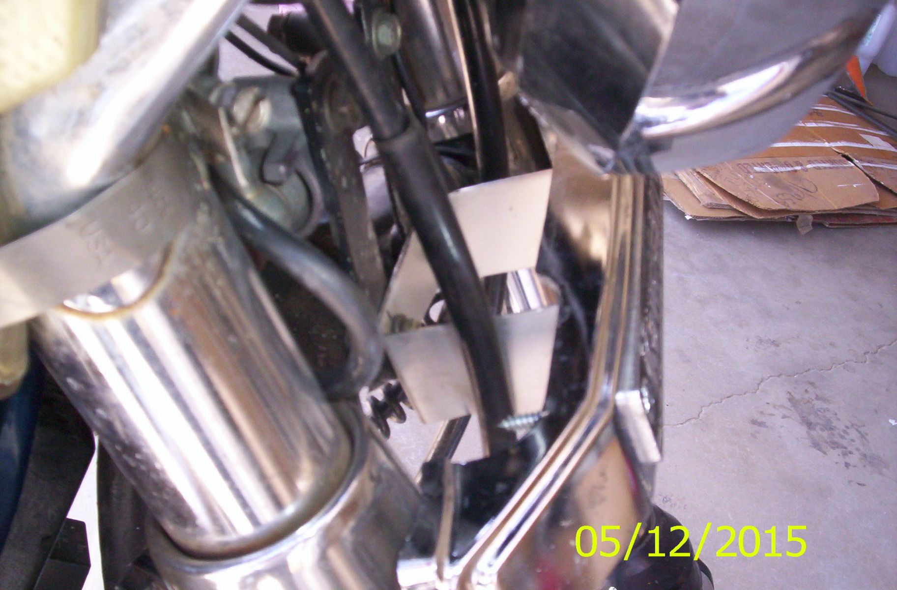 The whole thing bolts on to the lower yoke(triple tree) using the same holes as the splitter (longer bolts)