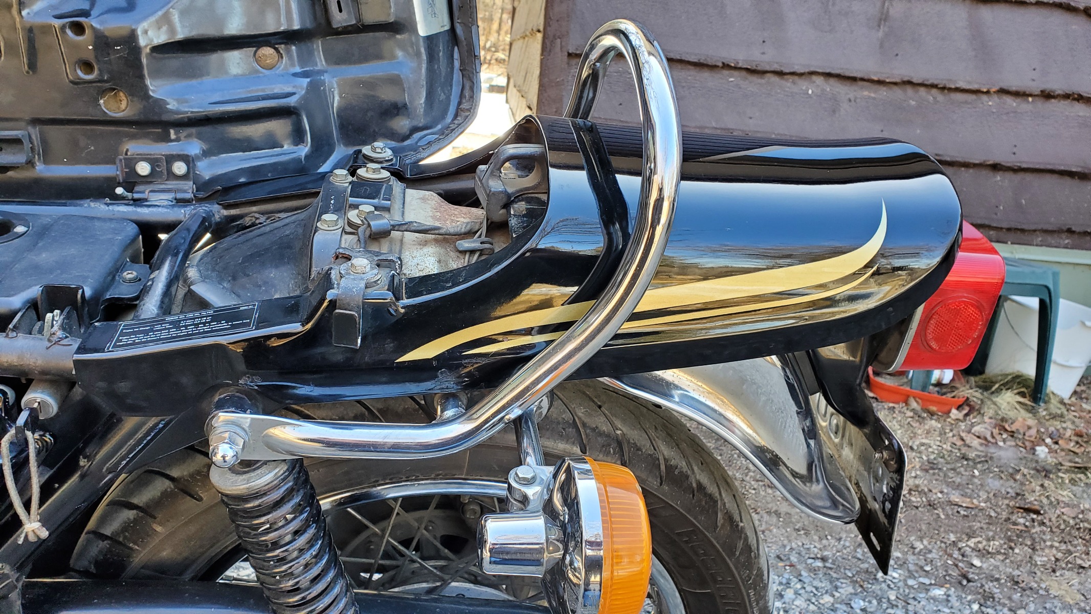 I always try to take them from a "certain distance". Up close, it's nowhere near as nice as some of the bikes I see here. Not too bad for 44 years, original paint and nearly 80,000 kms, though! I've always tried to take care of it. I'm getting ready to put on a new to me OEM exhaust in the next few weeks. That will improve the up close looks considerably.