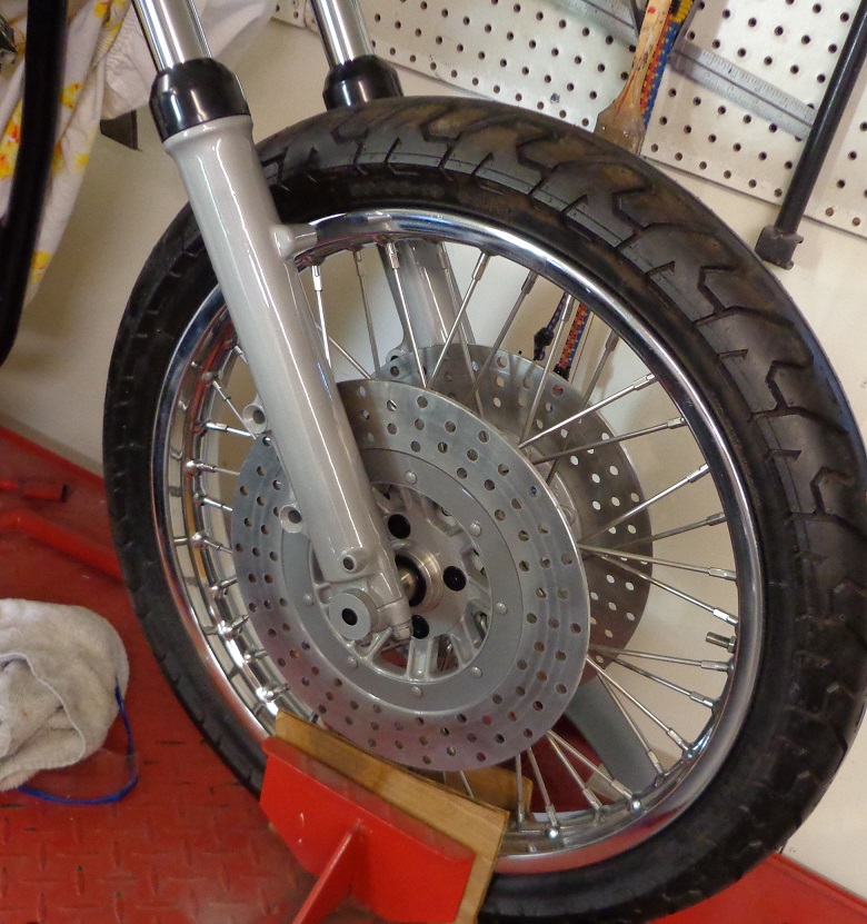 I was already planning to have both alloy wheels media blasted and powdercoated, and have found a local shop which (I think) will be suitable. Maybe I'll ask them to do the clear on the lowers as a test and then bring them the wheels (and the swingarm and the center stand) if they do a good job.