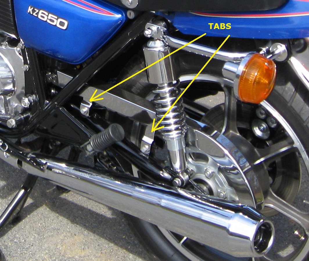 Here are some images of the chain guard that fits the KZ650-B and C models (last image is in next reply). Notice the distance between the holes in the brackets is approximately 6.75 inches. The hole in the front bracket is about 2.5 inches below the top of the guard, and the hole in the rear bracket is about 3.5 inches below the top of the guard. The overall length of the guard is about 21.5 inches, and as can be seen in the last picture (next reply) the brackets are offset from the guard. I hope this helps. Ed