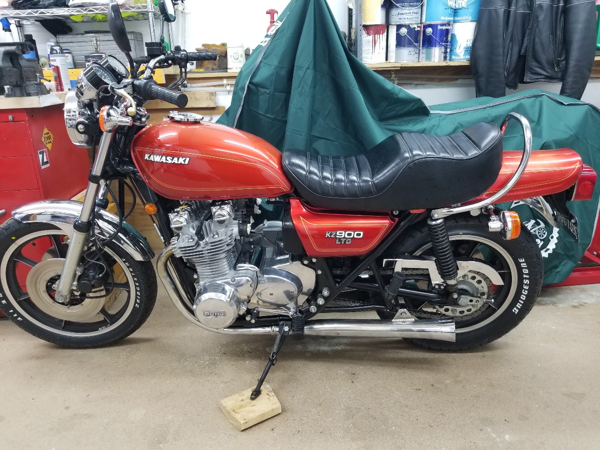 About 1979 I shared a house with a buddy and he used to keep his Diamond Candy Red 900 LTD in his bedroom. Super chromed out with a Kerker, he took meticulous care of of it.. A few years later he sold it to a hard drinking mutual friend who dumped it hard. I don't know what became of it after that. What a shame.