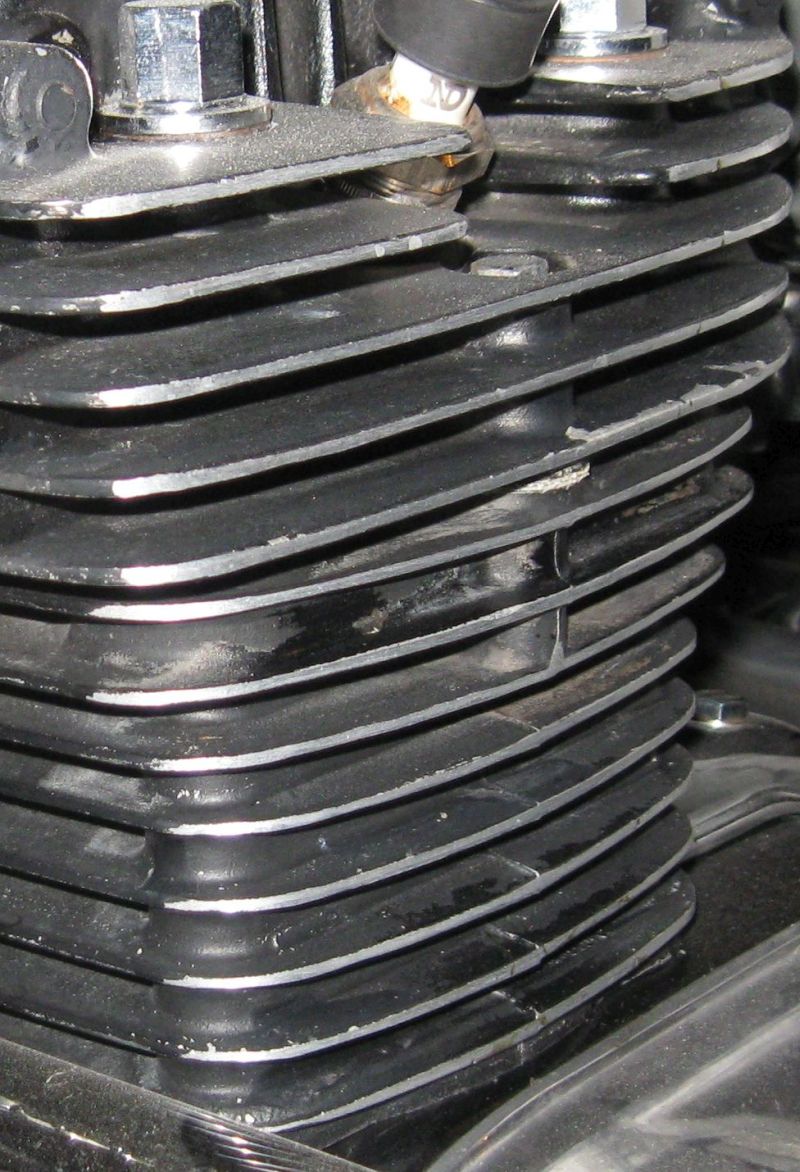 The fins on the end of the Cylinder Head and Cylinder I am told are not painted and are in fact sanded which leaves the fins just bare metal.