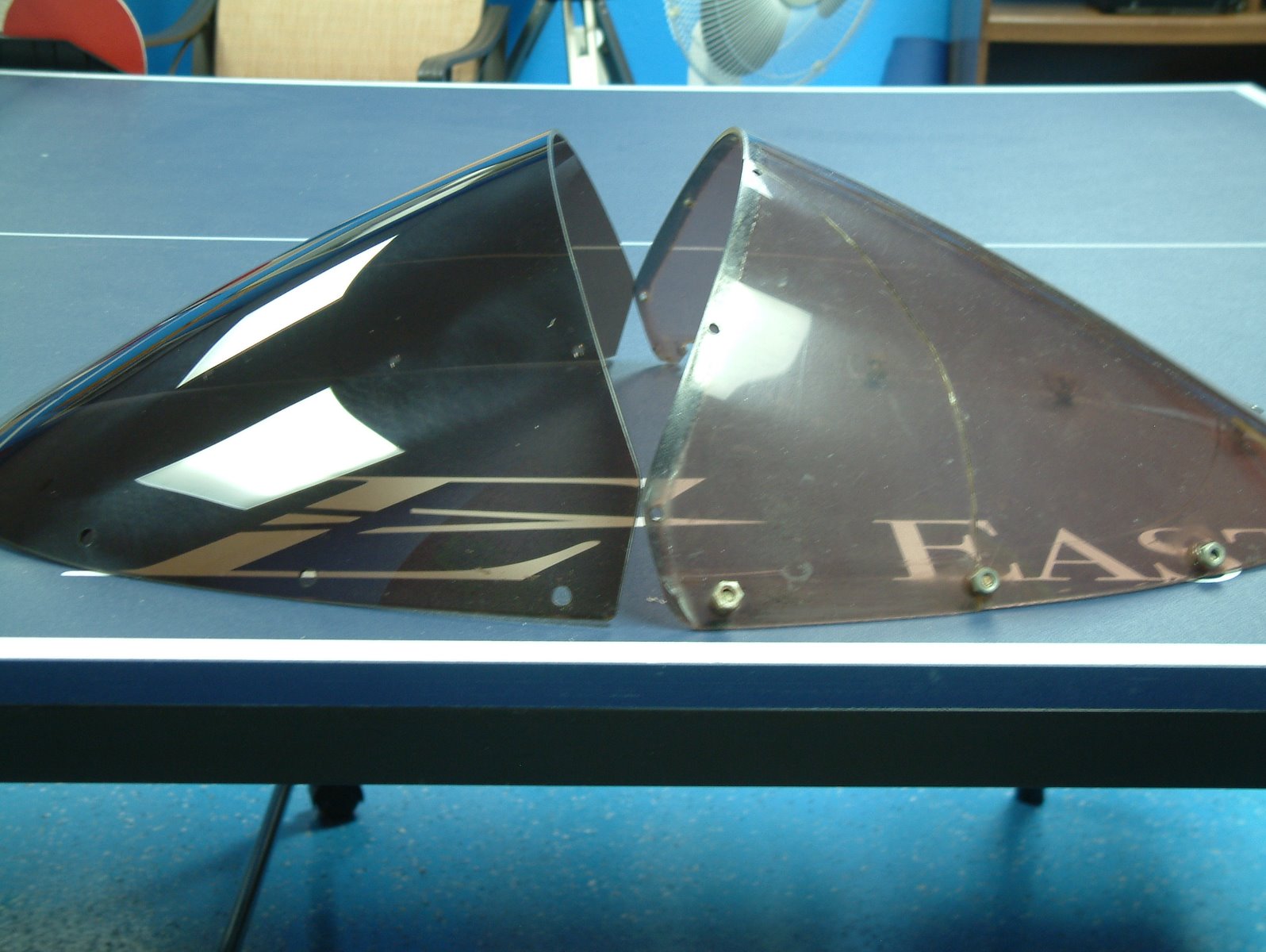 My terminology might be wrong, but the stuff we use as glass replacement in our drag cars is called Lexan, and is pliable to a degree and drillable without shattering or cracking, unlike the Plexiglass the Z1R windscreen is made of.