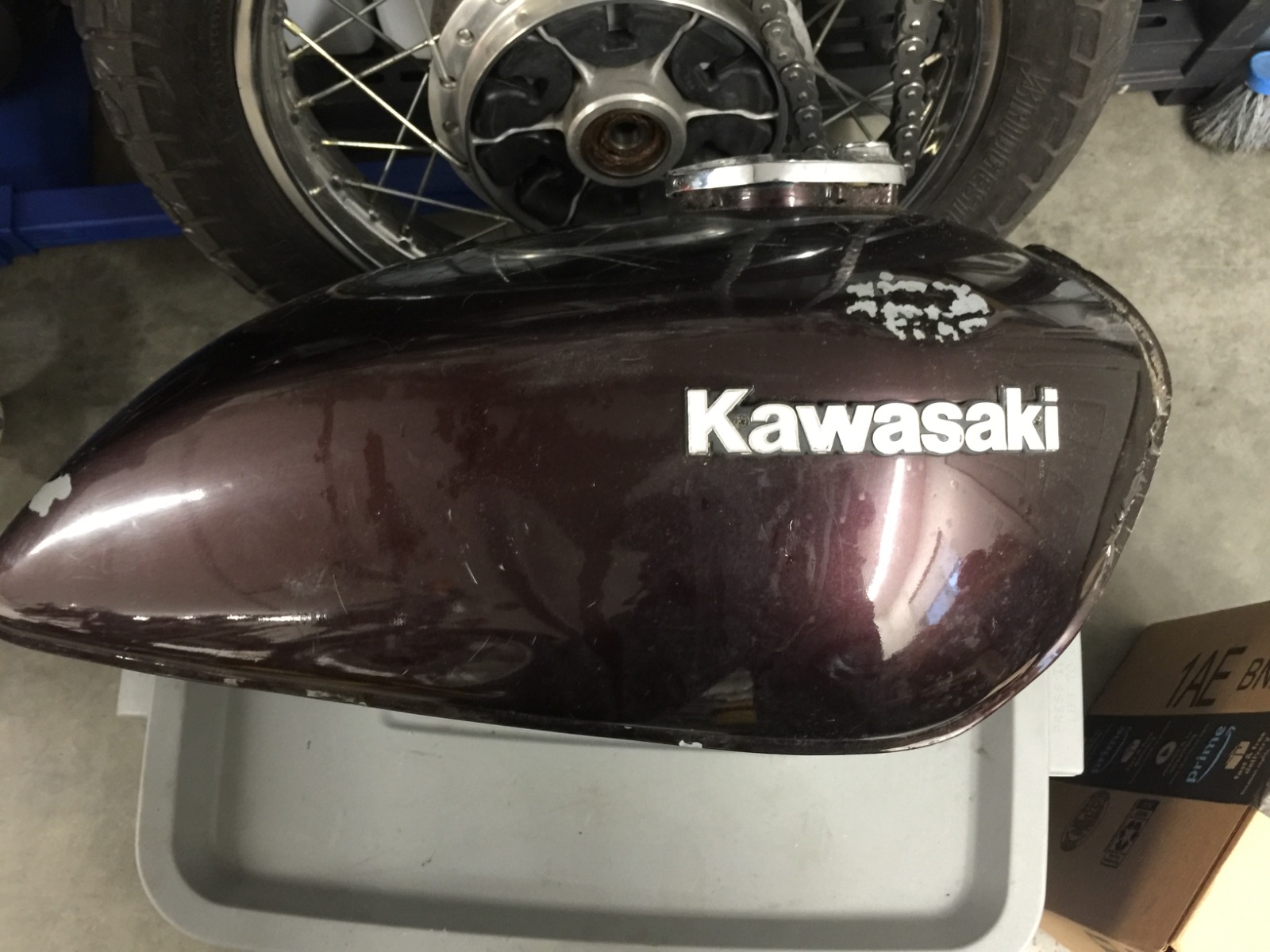 I checked my spares and found my tank. This tank came off my '80 KZ1000 LTD. The bike sat for about 8 years, in plastic wrap until I bought it in 2015. I never used the tank, tail piece or side covers because I bought a set online in '78 colours that I really liked. The tank is in fair condition, with some minor surface rust inside and one ding on the right front that a body person could probably pull out. It's not deep...just a crease. The paint is bad...needs to be repainted. Here are a couple of photos. If you want it you can have it for a $100 donation to KZRiders...and I will pay the shipping if you are in North America. I live in central BC, Canada.