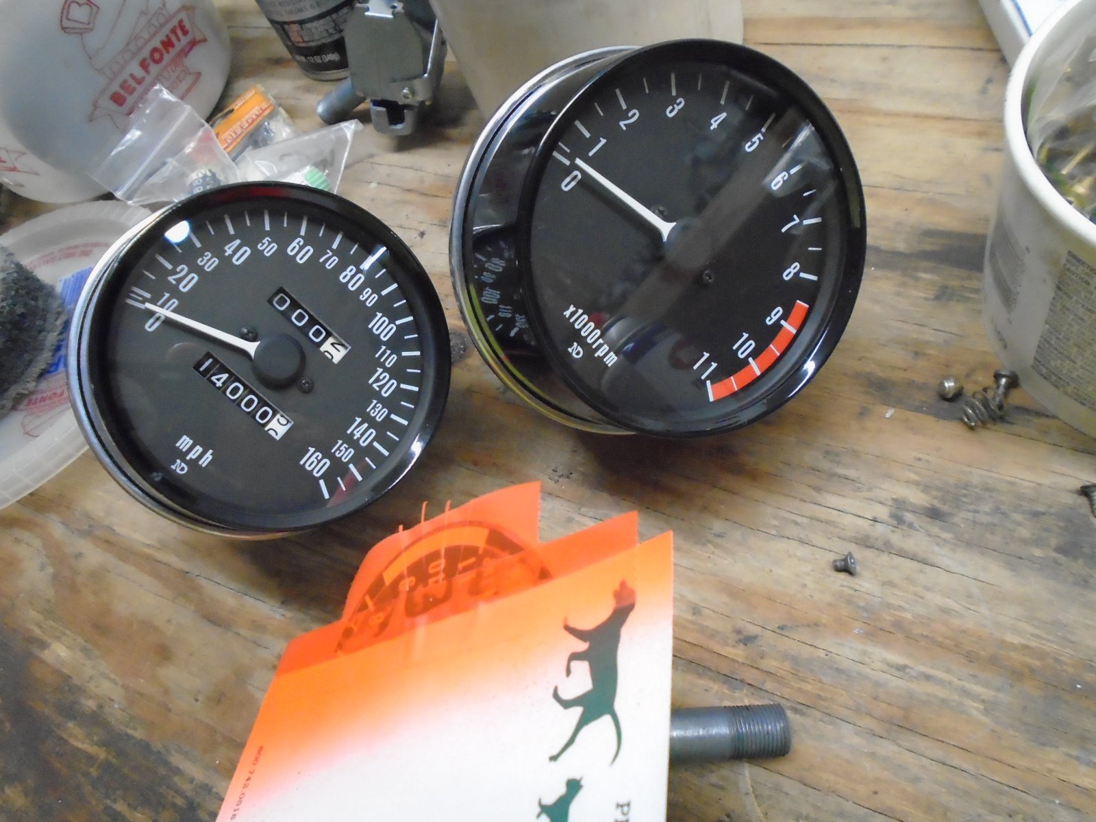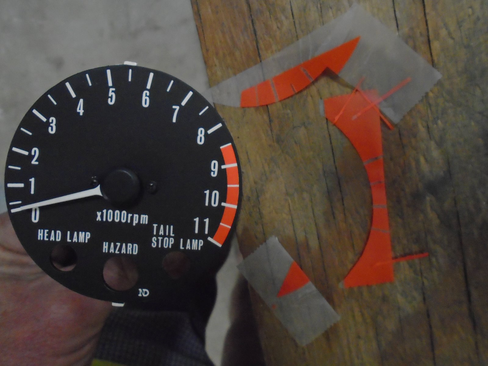Thanks for the Kudos Mikaw! I can do instruments but at the same time I love to promote the DIY spirit. Got a crappy instrument, what do you have to lose by experimenting and gaining a wealth of information. Example of Mikaw's completed gauges and a Z1R i'm doing just because it was laying around and I got bored this morning. You can purchase replacement faces but if the existing is decent I just clean and on tach faces I re-paint the redline. Investment, scotchtape and a can of paint. The completed one of Mikaws was repainted also. Oh and a Steady hand/patience is required. Lots of other tricks can be applied also for the mechanical aspect. If it doesn't snow too bad today i'll shuffle up to the post office and you'll have them in a jiffy Mikaw.