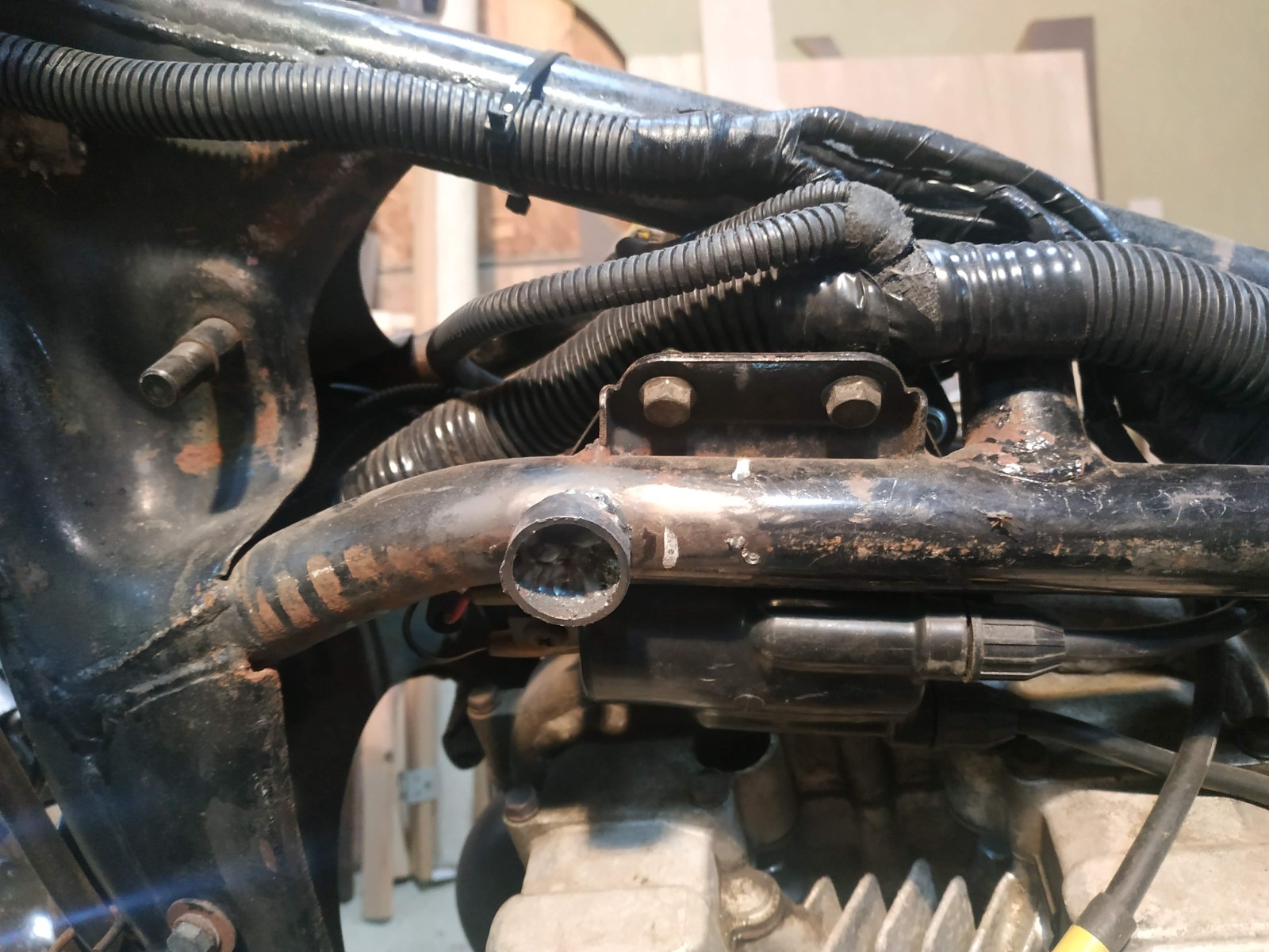 To install the Yamaha XJR400 fuel tank, you will need to weld 2 pieces of 25mm pipe to the frame.