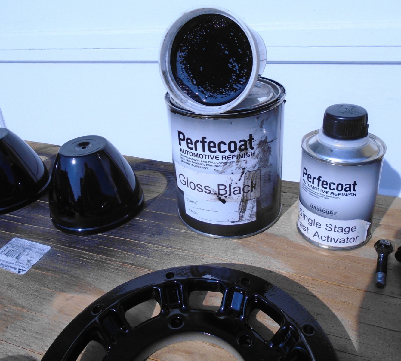 Used this cheap single stage urethane 4:1 mix, out of the gun and done! Bought this paint on ebay, it was $46 bucks to my door. 40 ounce's of sprayable material, you can even thin a little if you want. I did this quick, not going to be keeping these items.