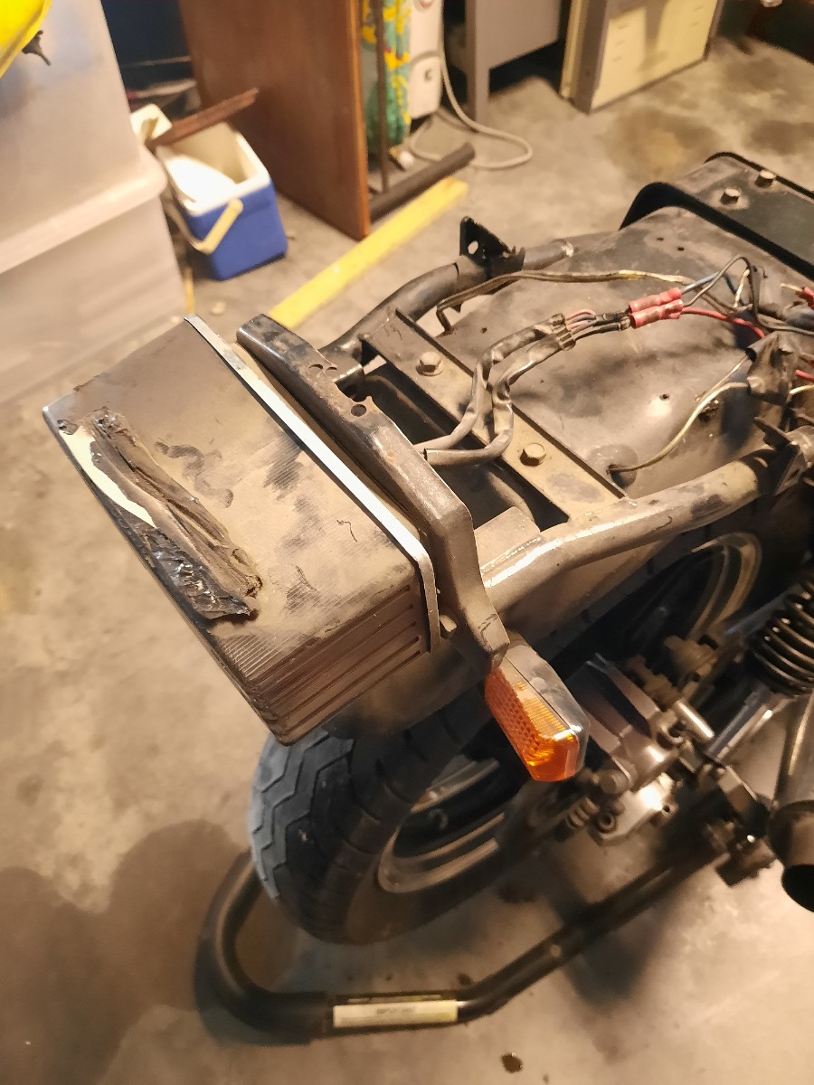 Hi all, I've been back on my 1000J project, its running and now just the fiddly bits. This bike has had a tail light bracket mod to tuck the light into the ducktail - looks cool but the original rubber block mount is gone, and the previous owner siliconed the ducktail to the tailight lens instead. I may even do this again but would like to see if I can get a rubber mount back into the picture, it will need to sit above the tailight lens.