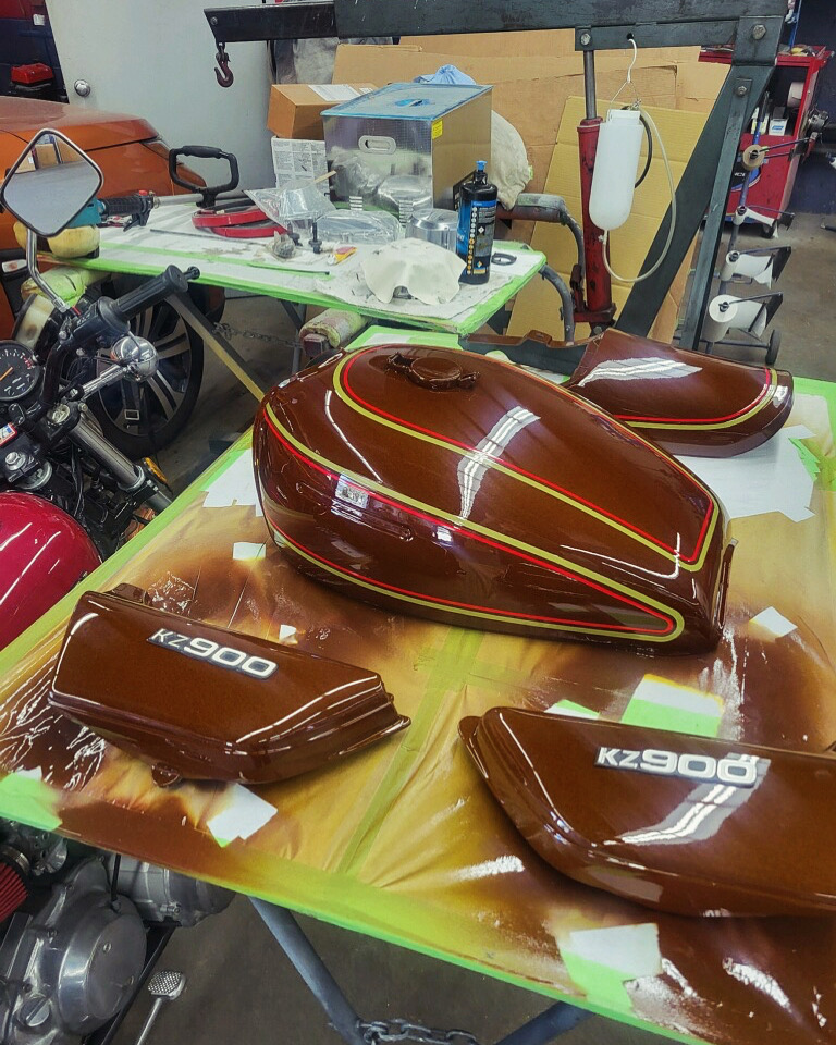 Picked up paint set for my KZ900 from local body shop. Thanks to Ralph Pitlock from paintworkz.com for providing correct paint and instructions.