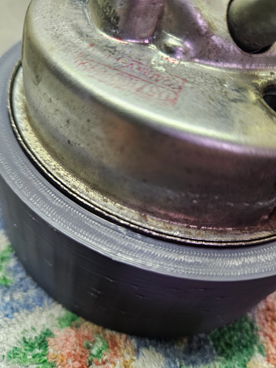 I used a 4" piece of aluminum round stock to work the crimp ring profile with a plastic mallet. Be careful not get carried away. Stay away from the 90° radius that contacts the speedo front half. Make sure that stays pretty!