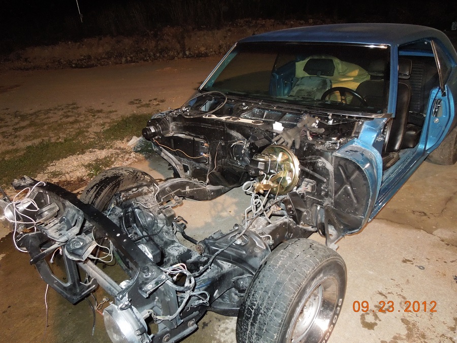 I got it as a stalled restoration. the blue had been sprayed but not the stripes. I had to spray the stripes and assemble it. Since it was apart it was easy to make a few "upgrades". The changes lower its value but increase the fun factor ten fold. I did a little to the suspension too. Guldstrand drop, IROC steering box, aftermarket four wheel discs, bigger sway bar, frame connectors.... It would not be too difficult to go back to stock but after I'm gone someone else can worry about that.